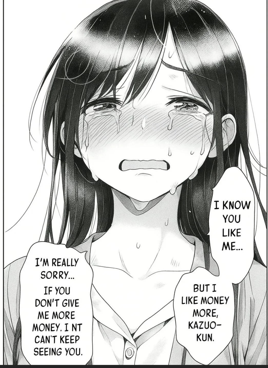 >“You’re breaking up with me,” I said. “You never planned on marrying me, did you? Was this all just a game? Did you plan to toy with my heart and cast me away when you were done with me?” >“N-no, I would never! Renako, I would never do anything so dishonest to you. My heart belongs to you and only you!” >Wugh. My own heart, which was cracking in two, felt Mai’s words like a set of bandages patching it back together. >“Then tell me,” I said. “Who do you like better? Me or her?” >“You, of course!” >“Do you really mean it? Tell me how much you like me.” Как это дошло до такого, и чмохе стало не похуй на женитьбу?