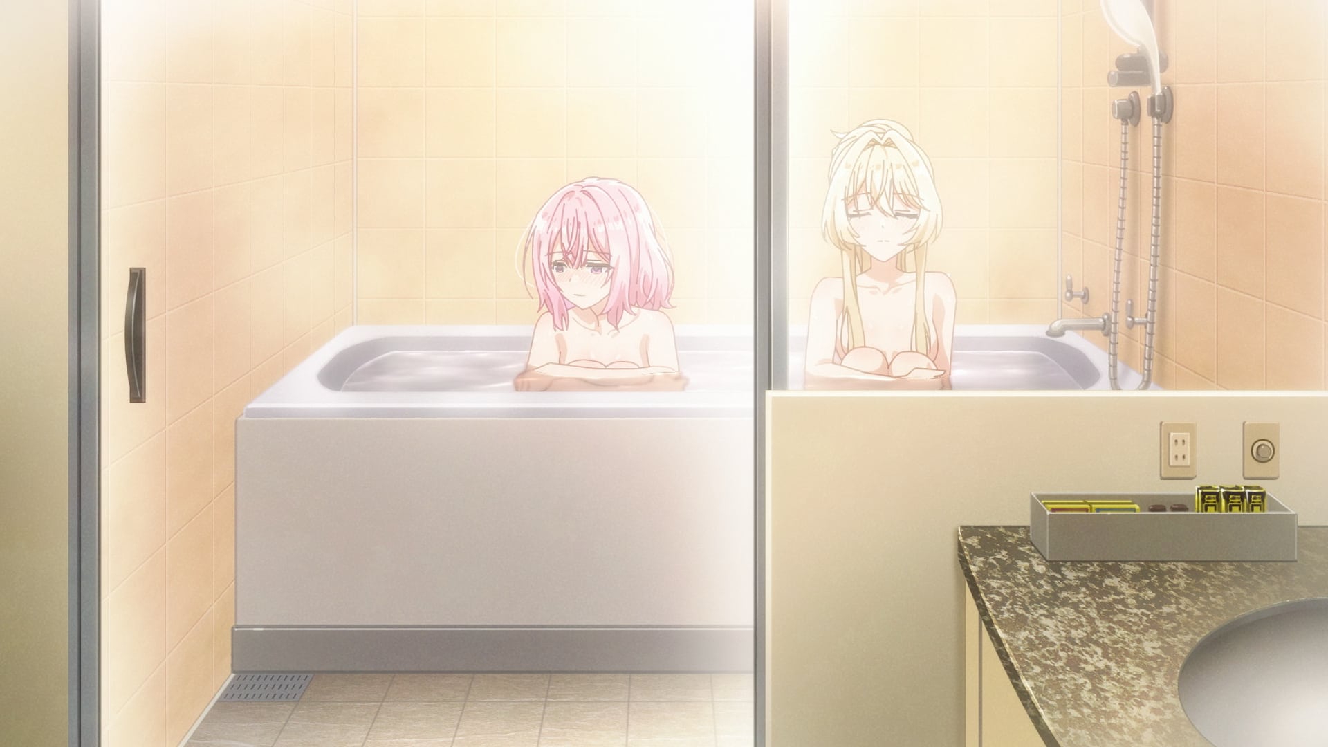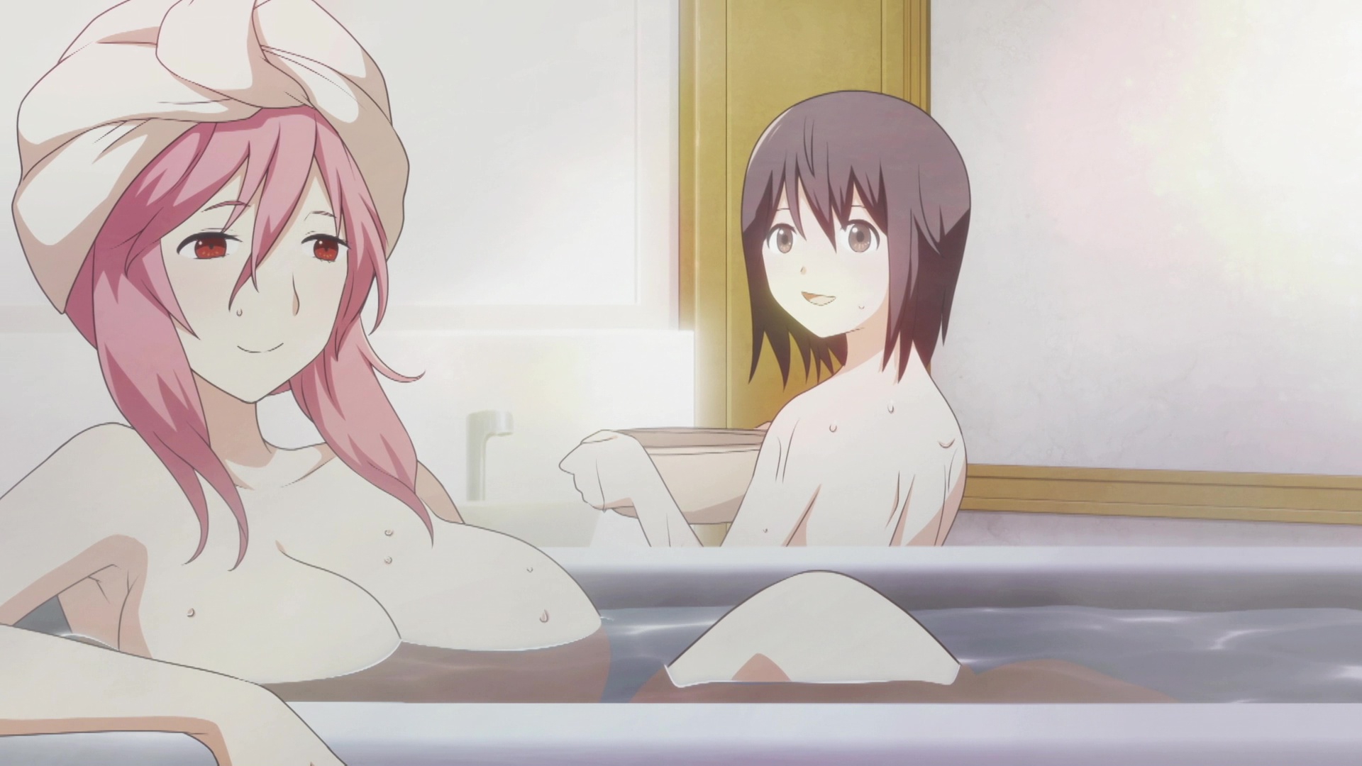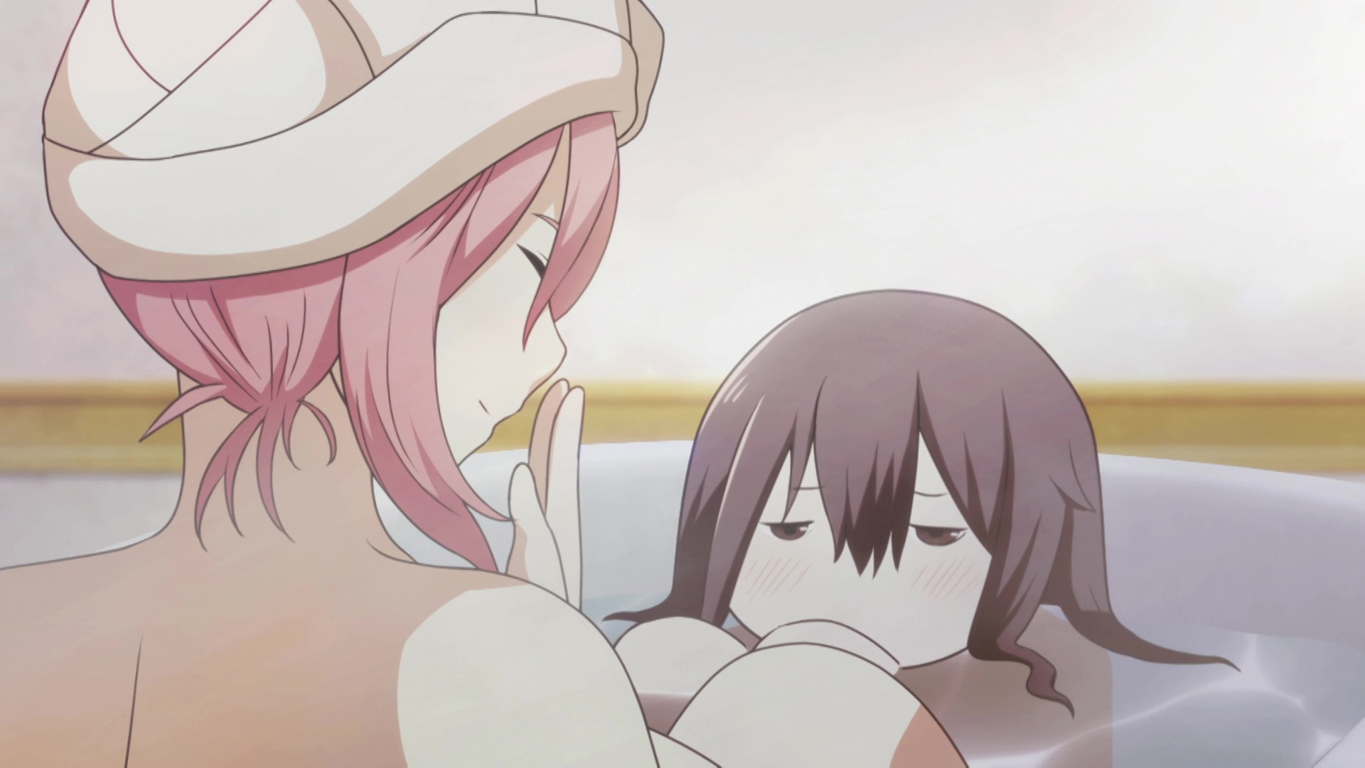 lathered herself up with soap, leaned forward, and rubbed her chest up and down Renako’s back. Renako squealed. “Um! U-u-u-um?! Youko-chan?!” “Mm-hmm?” “This is pushing the boundaries on friendly activity!” “Well, you said you didn’t want someone else’s hands on you.” “Yes, but—I don’t want your boobs on me either!”