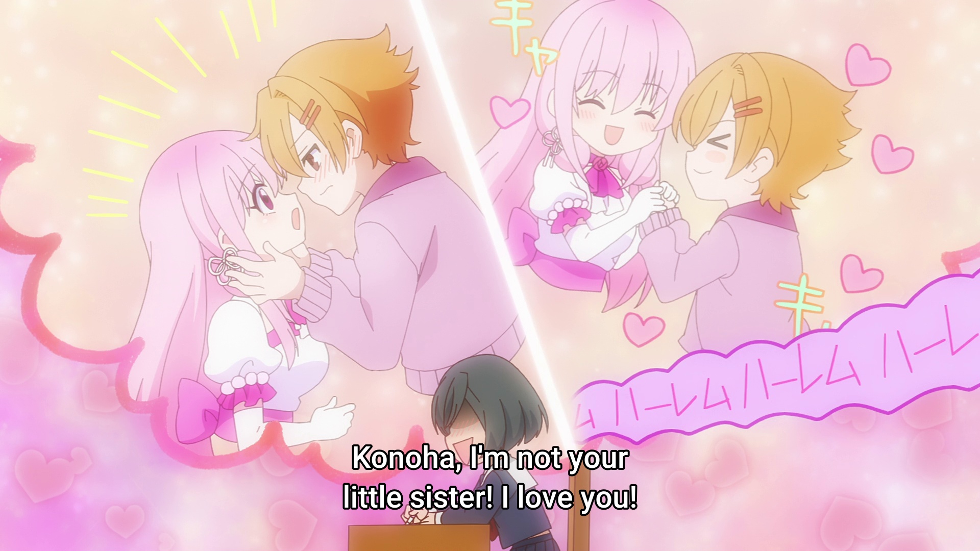 “Say what? You’re playing a dating sim?” And like, one made for guys. A dating sim where you romanced girls! “Sure, dating sims are fun,” I said, “and there’s a bunch of cult classics with longtime fans. But why would Kaho-chan recommend one to you?” Satsuki-san hugged her knees and feigned ignorance. “‘Fun,’” she repeated. “What, have you played dating sims yourself?” “Hm? Yeah, just casually. And like in junior high.” “Oh ho? Dating sims where you pursued female characters?” Satsuki-san averted her eyes from me, and for some weird reason, I started to feel awkward. Hey, wait a minute. “Hold on!” I said. “You’ve got the wrong idea. I didn’t, like, have a waifu or anything! I just enjoyed them for the gameplay. That’s all.” “I don’t care about your sexuality,” she said. “You don’t need to keep hiding it.” “I’m not!”