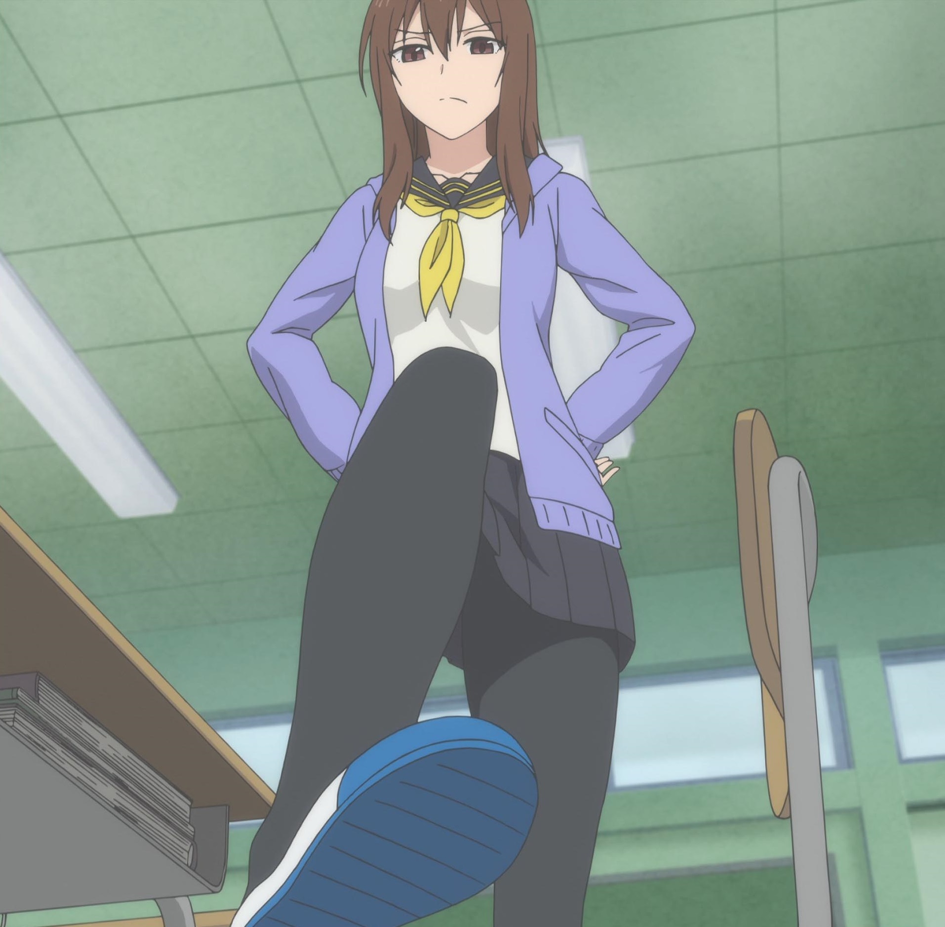 >It was already December, and today happened to be ridiculously cold, so I kept a space heater running in my room in order to combat the freezing temperature. However, it seemed that it was too hot for her, seeing as how she’d already taken off her blazer. She’d also loosened her necktie and was lazing around while wearing nothing but her blouse and a short skirt, which made her look quite sloppy. It felt like, if you really wanted to, you could easily peek up her skirt. Рабские вымираты.
