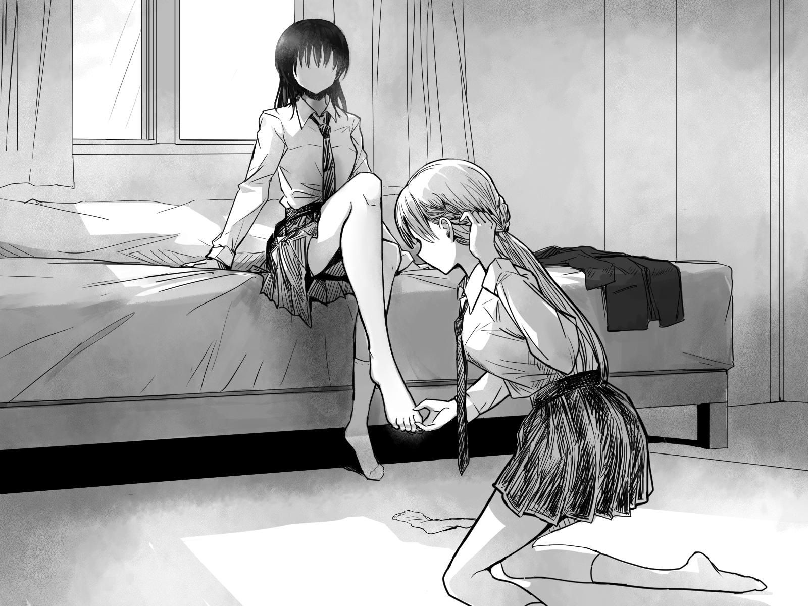 >I didn’t find joy in the act of having my foot licked by someone else, but it was entertaining because Sendai-san was the one doing it. >That same Sendai-san, who stood out among our peers and was favored by our teachers, was now licking my foot. >She was licking the foot of someone as ordinary and unremarkable as myself, just like a servant would. >The thought of that alone was enough to lift my spirits. >「So you actually find this fun, huh? In that case, while I’m at it, should I make it feel good as well? 」 >While saying that, Sendai-san placed her tongue by my big toe and gradually made her way towards my ankle. The warm and moist sensation of her tongue caused my hands to curl into fists. I could feel knots forming in my stomach as I clenched my teeth together.