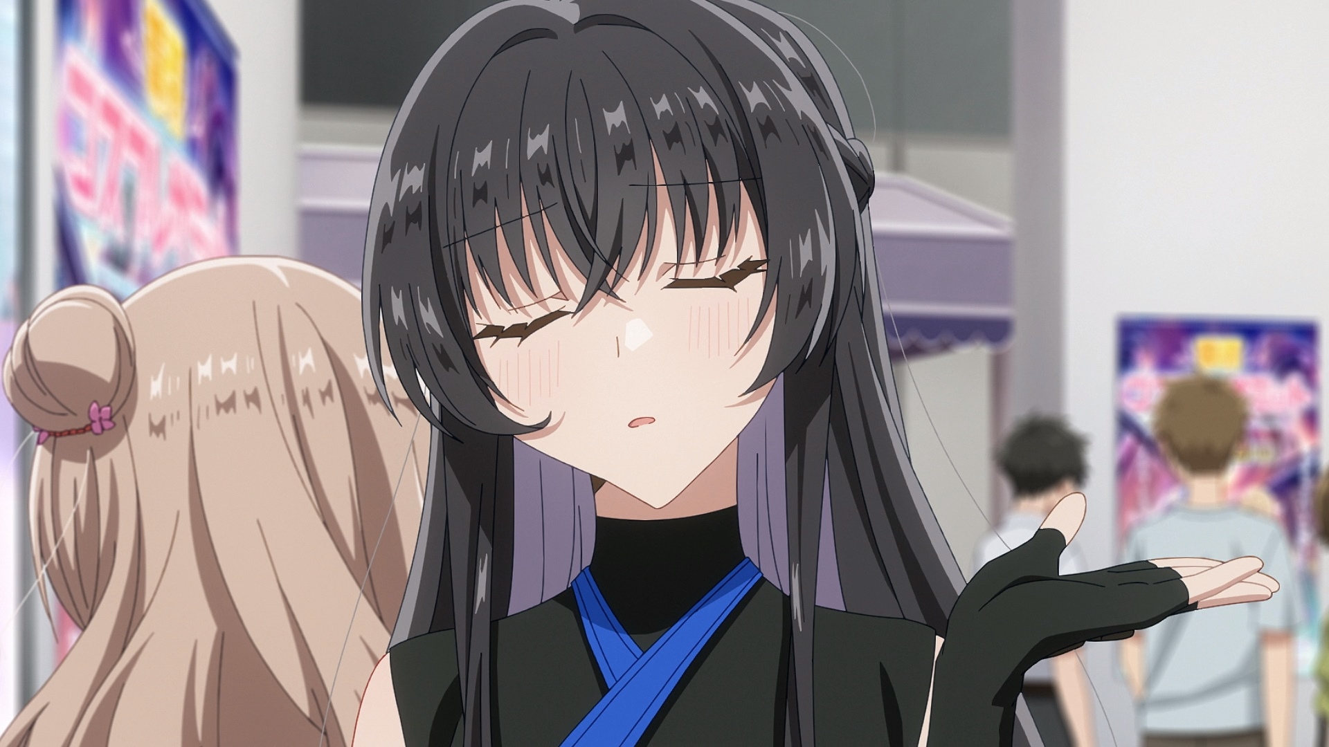 В начале серии хотел написать, что хотя бы драматургия тут хорошо удаётся, несмотря на заунывность действующих лиц, но всё это нытьё во второй половине всё испортило. И вообще арки про косплей почти всегда лютая ебанина. Почему-то аниманга обычно умеет показать любое рандомное увлечение интересным, будь то сёги, готовка, карты, камни или живопись, а с косплеем вечно какая-то хуйня выходит, где персонажи вроде на словах этим горят, а выглядит совершенно безжизненно и натужно. Хотя тут не особо и старались похоже, Кахо тупо раз 5 сказала, что обожает косплей, и на этом всё раскрытие темы окончилось.