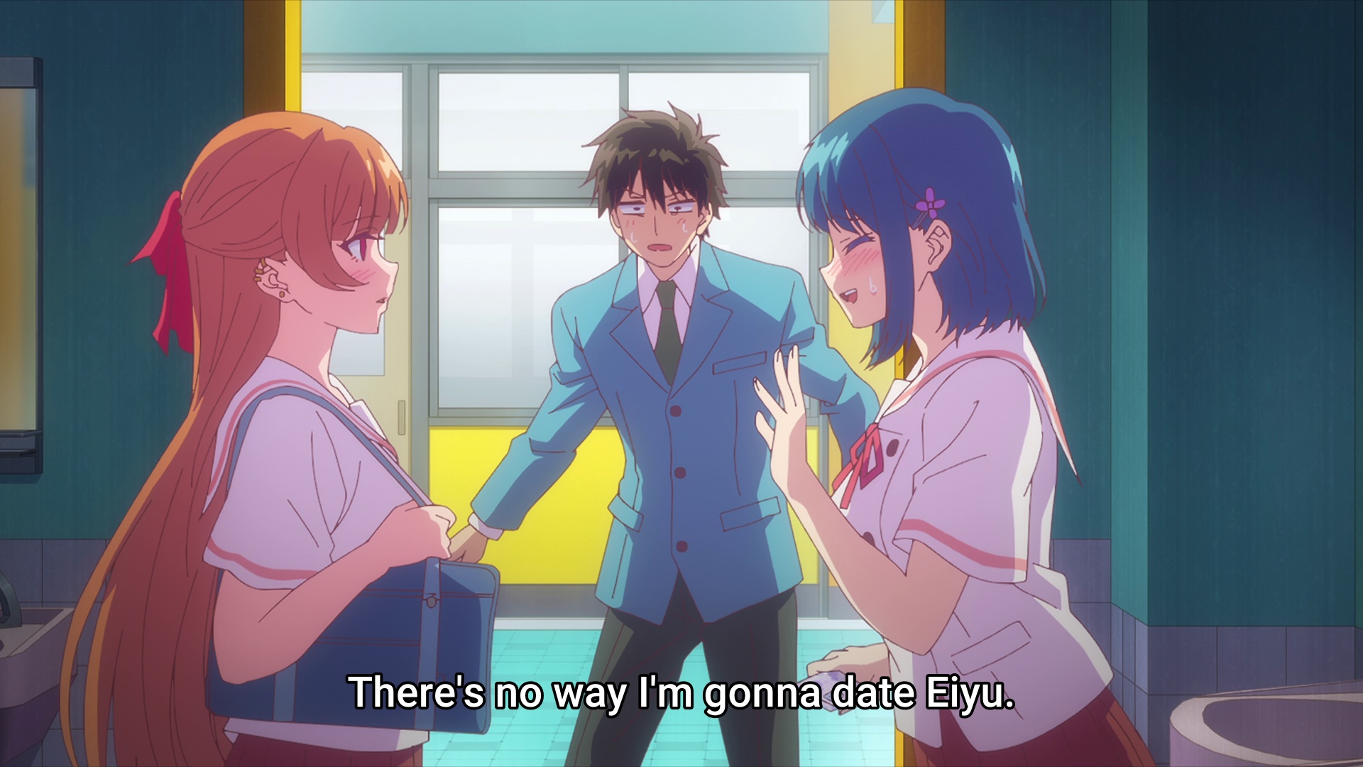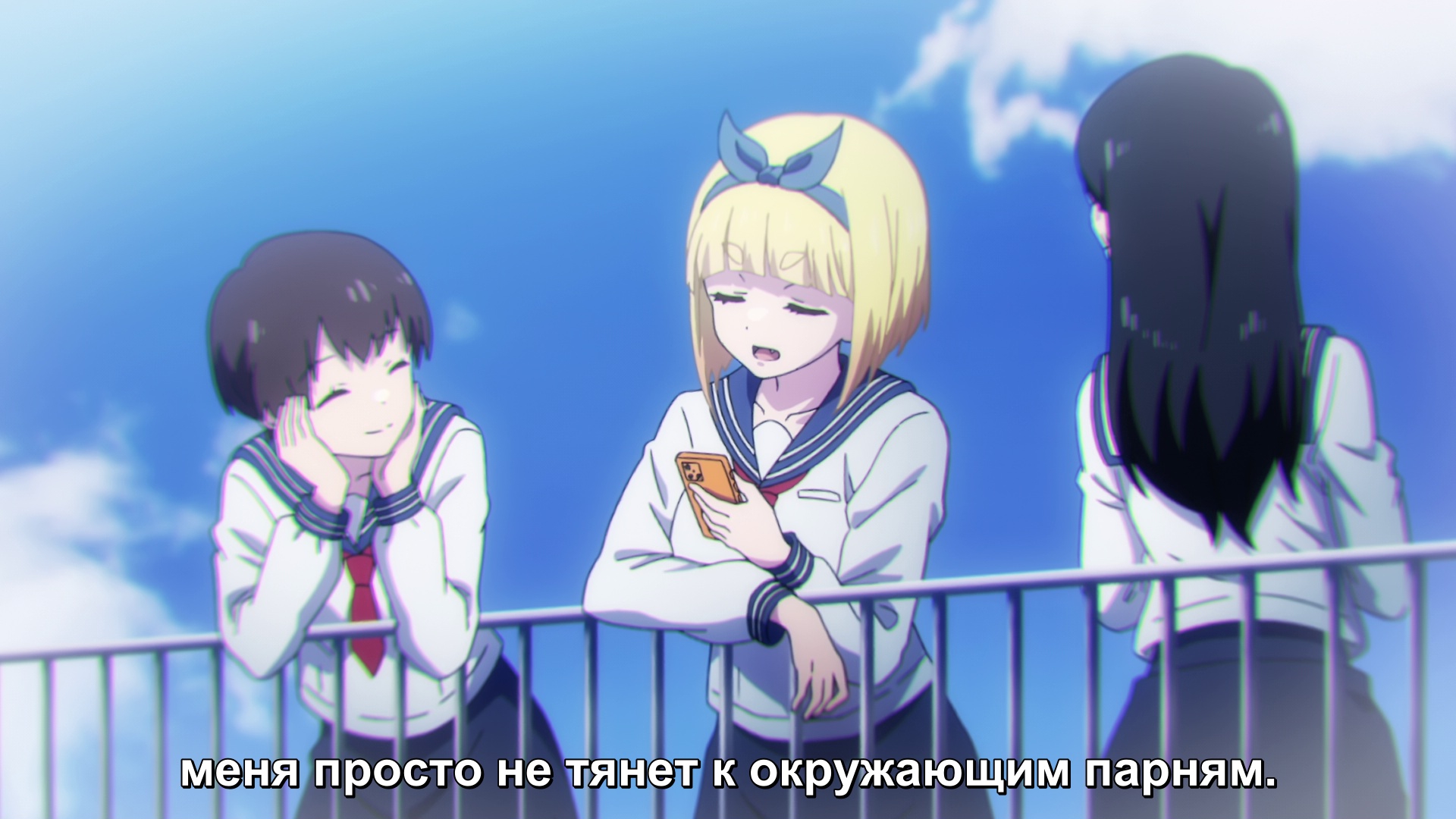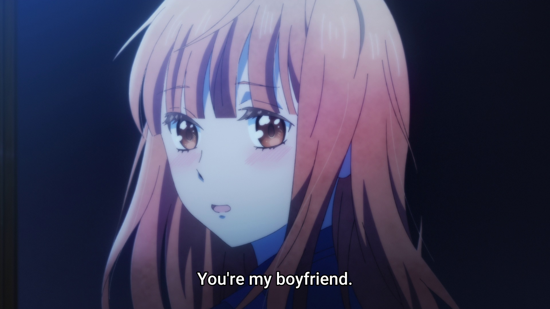 1.) Прикольно что не очередной слоп про дурачков, которые 300 глав не могут начать встречаться. 2.) Не прикольно, что придется смотреть 12 серий любоваться тян, у которой есть ПАРЕНЬ.