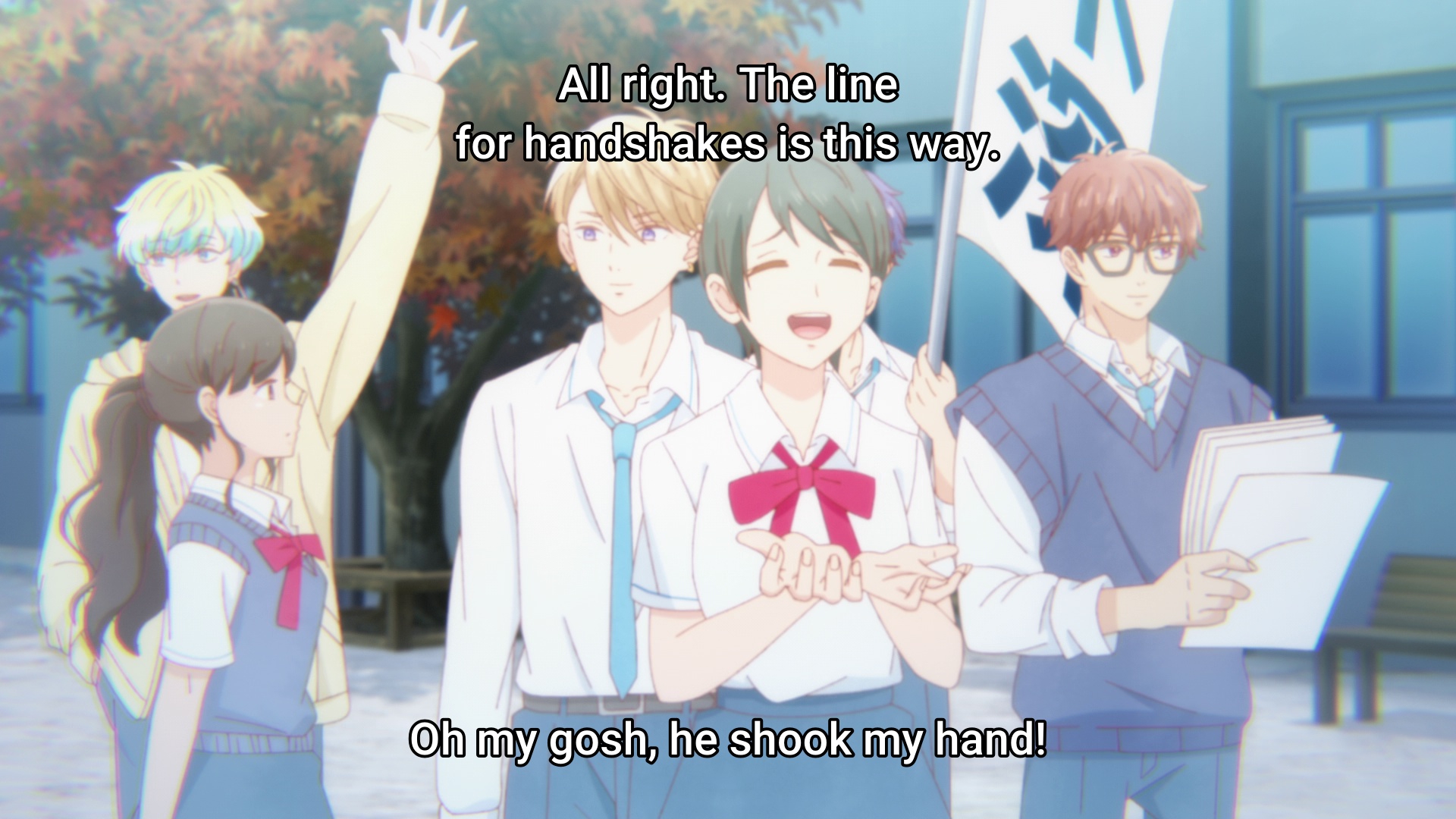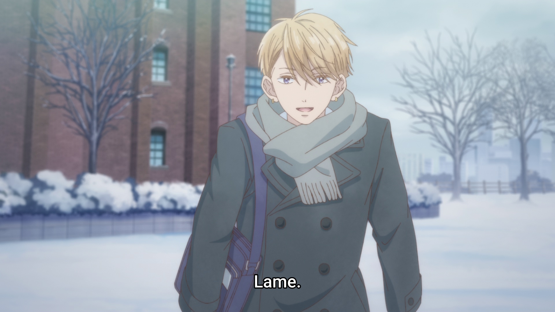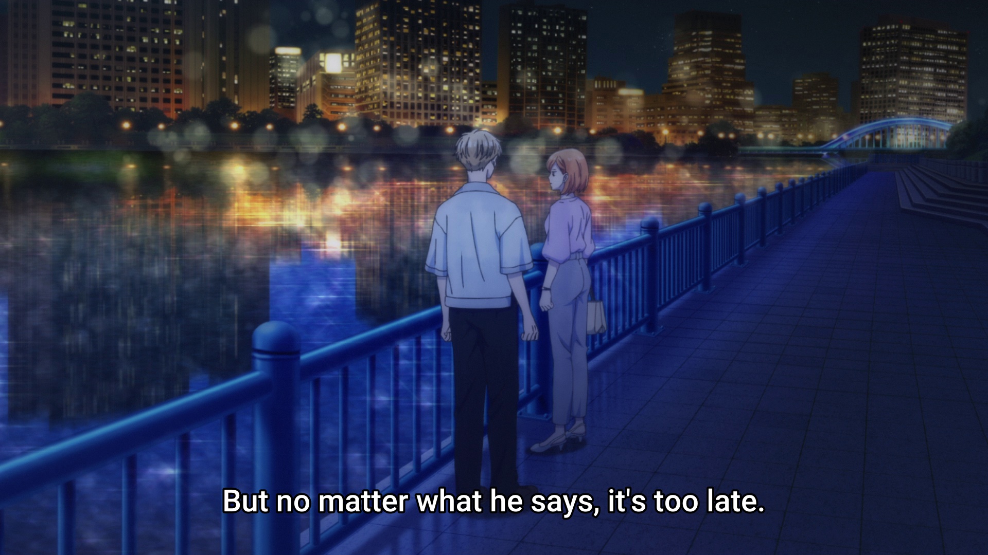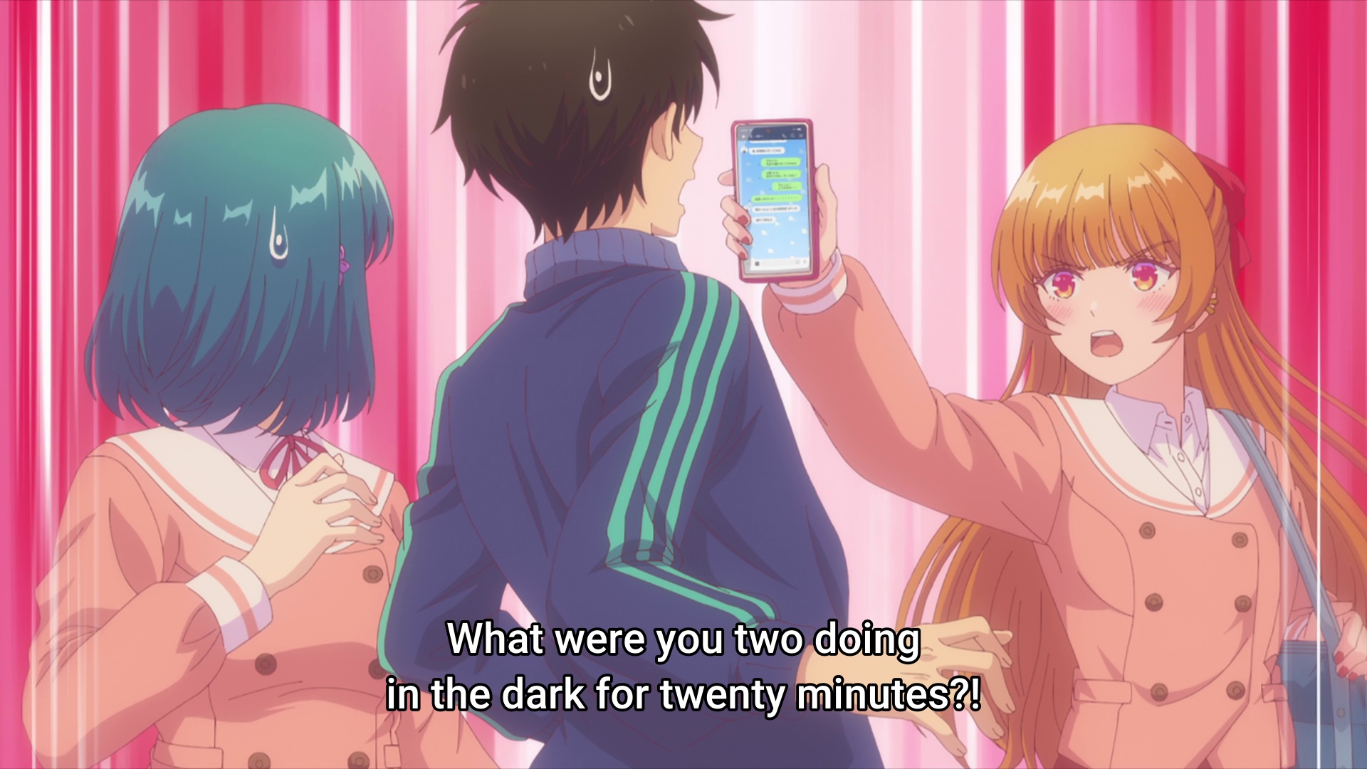 1.) Прикольно что не очередной слоп про дурачков, которые 300 глав не могут начать встречаться. 2.) Не прикольно, что придется смотреть 12 серий любоваться тян, у которой есть ПАРЕНЬ.