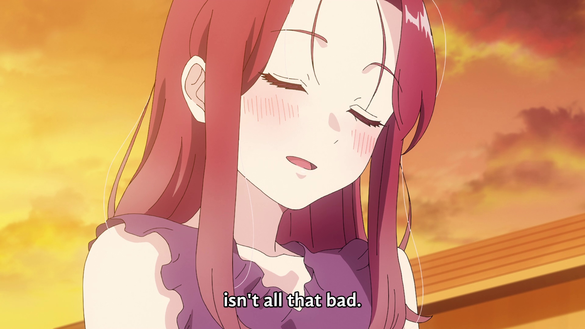 Не, забираю все свои слова назад, ни в какую драматургию автор не умеет вообще. Последняя серия - форменное шапито, я аж поёживался от неостанавливающегося кринжа. Аджисай это просто местный пылесос по высасыванию всего интересного и живого из каждого персонажа. Каждая из девочек, которая оказывается с ней в одной сцене, в миг теряет всё, что делает её хоть немного интересной, и пикирует на уровень этой безнадёжно унылой скулящей пизды. И тут конечно видно, как старательно автор её обслуживает, заставляя остальных девочек рассыпаться в приторных блевотных комплиментах и краснеть от каждого её скулежа. Фарс на сцене в конце даже как-то комментировать не хочется. Красных носов не хватило разве что. А косплей Кахо (и Ренако) тупо скипнули, настолько она нахуй не нужна была. То есть вся арка, построенная как будто вокруг Кахо, на самом деле нужна была ради двойного признания, а Кахо была тупо курьером по доставке Ренако в нужную локацию.