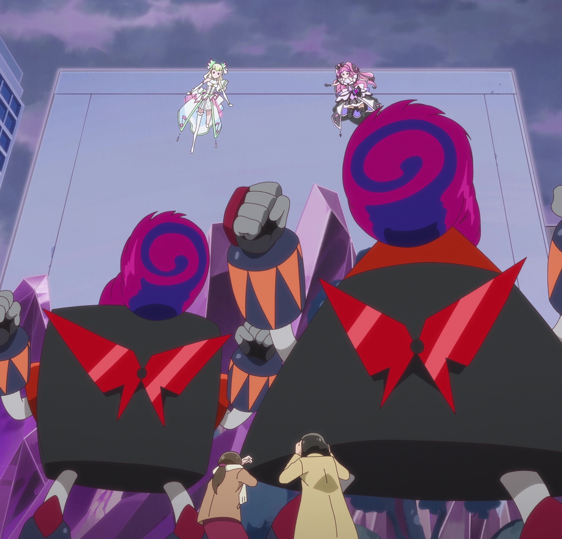 Бабы большую часть сериала стараются собраться в группу и научиться вместе играть, у них постоянные тёрки и лютые срачи из-за текущего и прошлого проекта, и ничего из этого не решается за три минуты гамбатте беготнёй, в конце много обоснованных слёз и соплей.