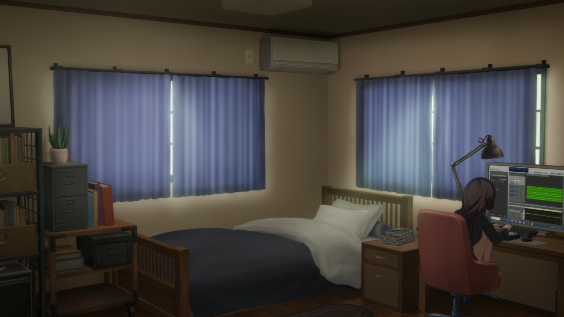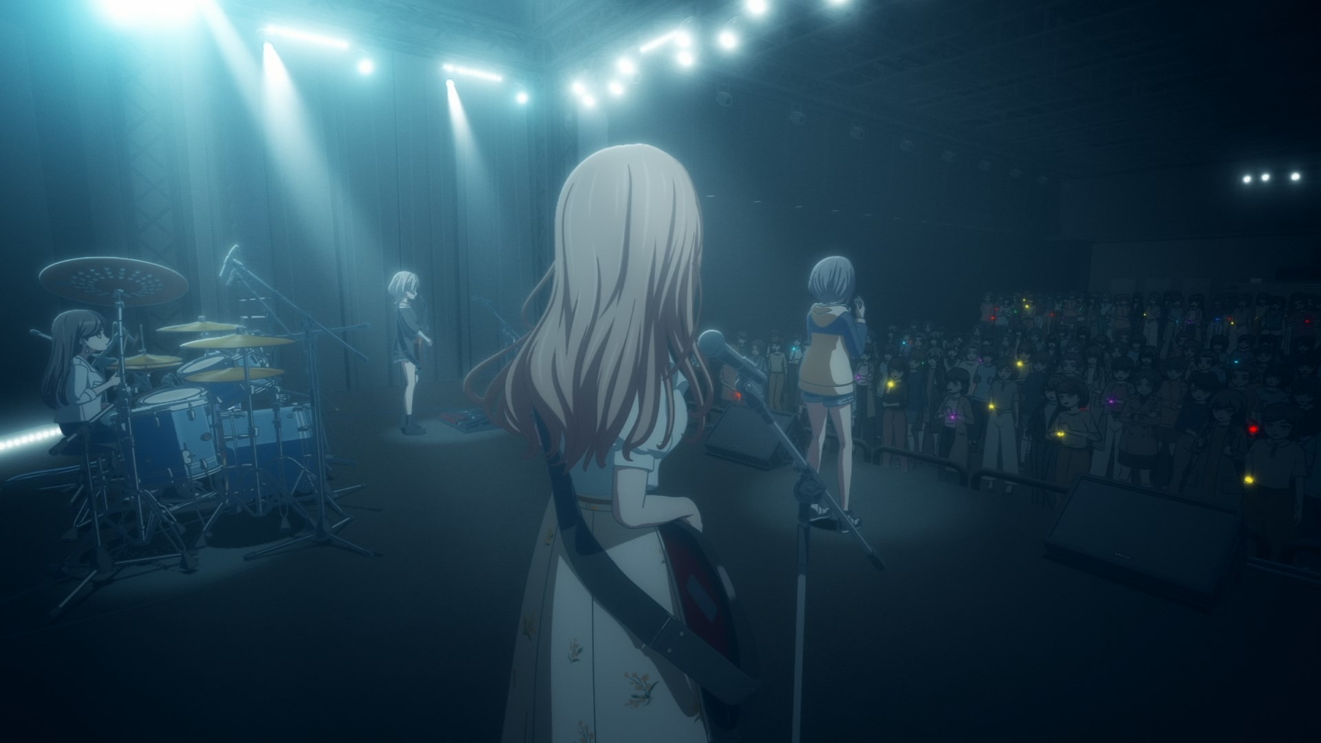 Ахуенная атмосфера музыки, блядь, со всеми этими кафешками, концертными залами с яжкой и заблёванными углами на сто человек и самопальным музоном. И подобных, как тут, сцен, когда группа героев начинает играть, но у них сбивается ритм, гитара тупит, солистку нихуя не слышно, в других тайтлах я не припомню.