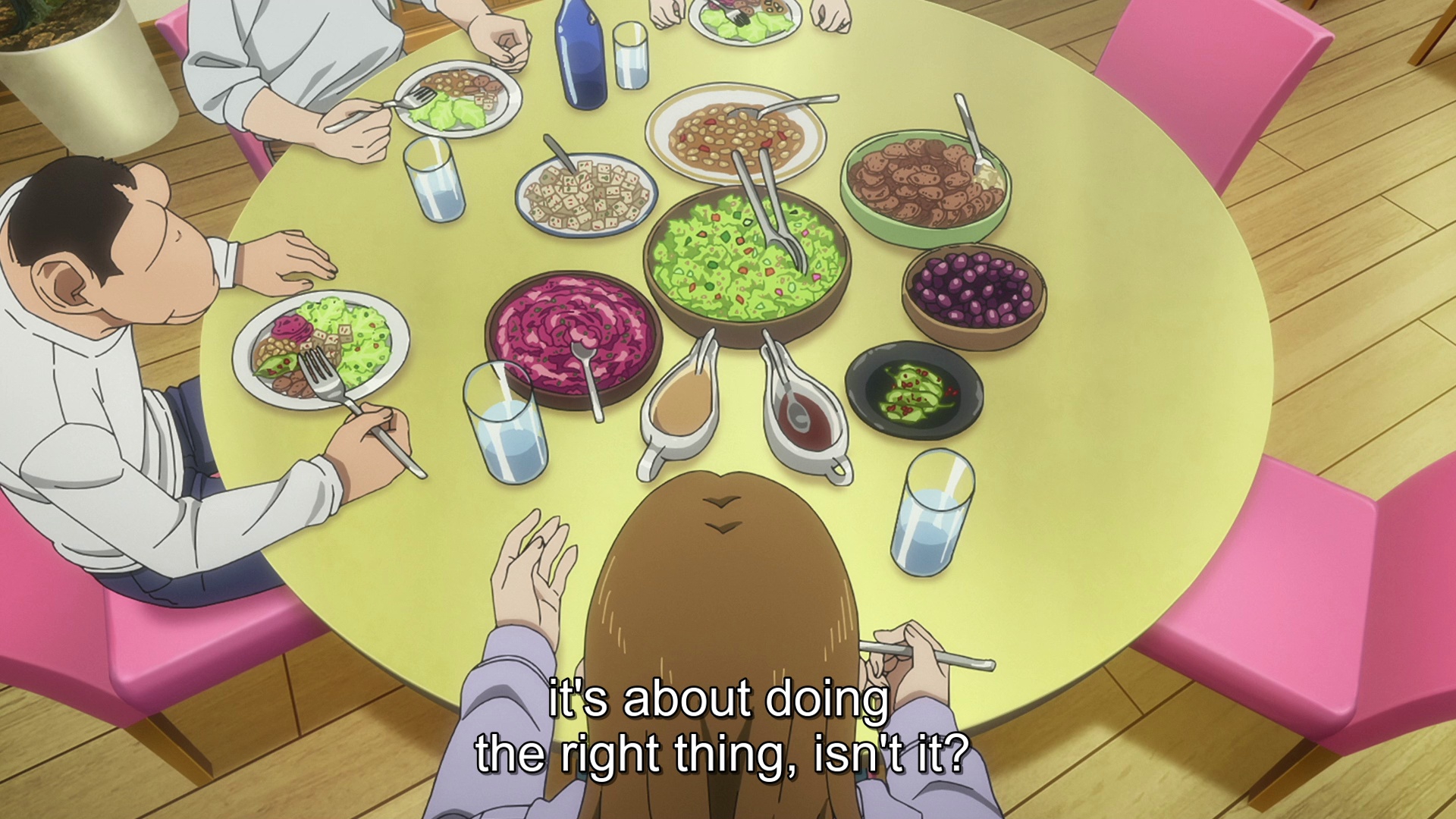 Вот прям удаётся им эти мини-истории рассказывать и подавать. Вроде сюжет эпизодический, а смотрится вполне цельно, и большинство мини-историй кайфово удаются. Мне ведь даже вполне зашла вся арка экзамена из прошлого сезона, но такое эпизодическое повествование тайтлу всё равно лучше подходит.