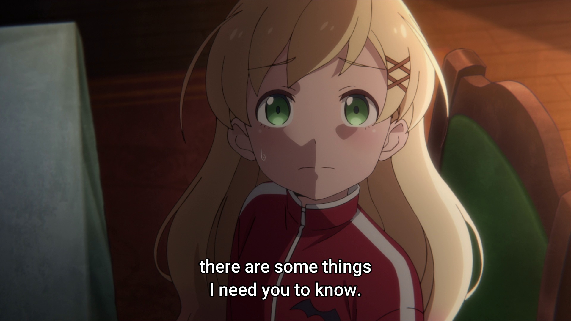 >「Give the necklace back.」 >She said as she yanked on the charm so hard I genuinely thought she might break it. >I immediately pulled the towel off my eyes. >This time, I managed to get it off before she could stop me. >The Miyagi in front of me had her brows furrowed. >Her expression was full of displeasure—but also looked like she was about to cry.