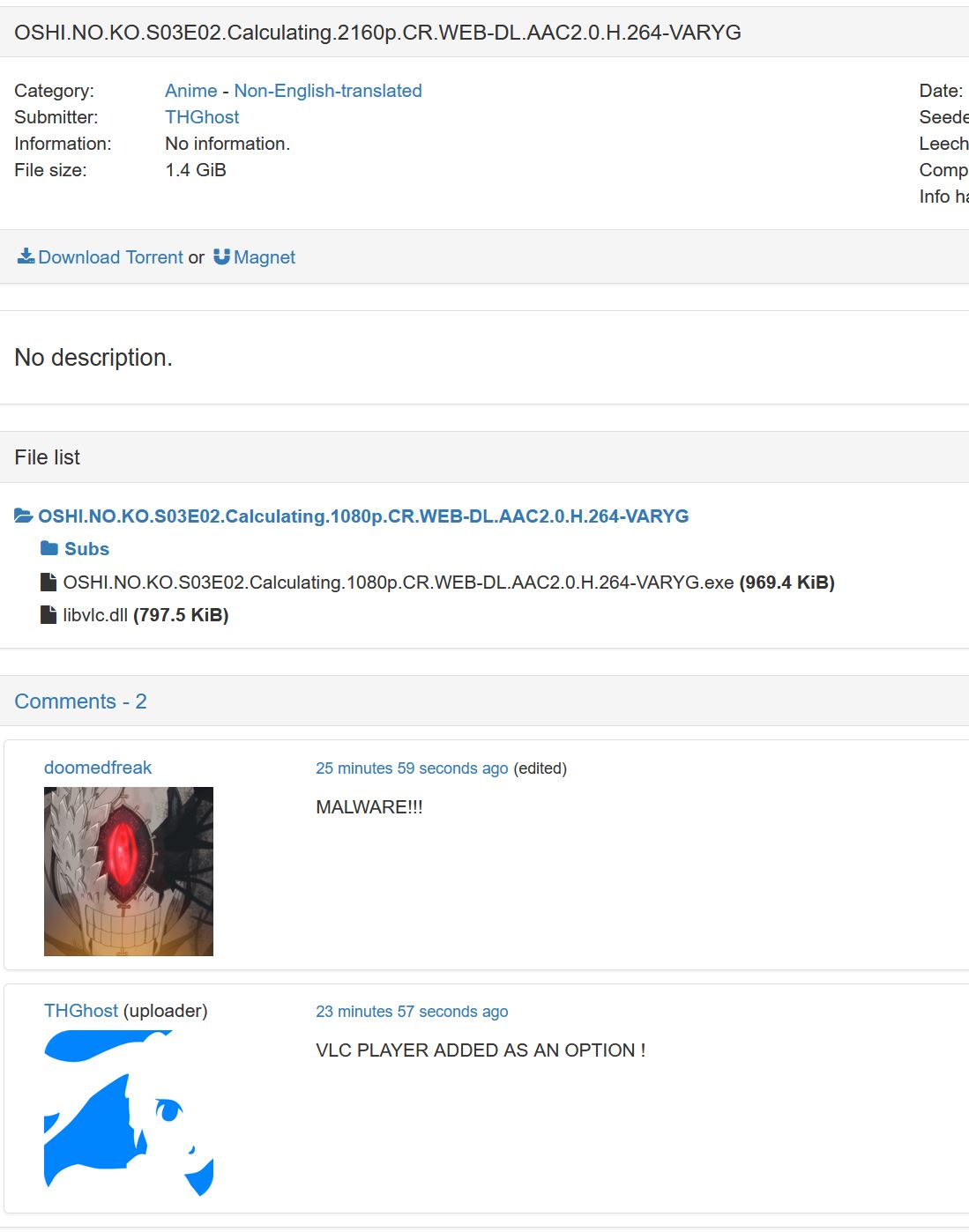 >>1105940 Этот уебок читает, но на середине серии может крашнуться из-за того, что там на 0.00001 секунды артефакт мелькнул. mpv не крашится, но субтитры просто в упор не видит.