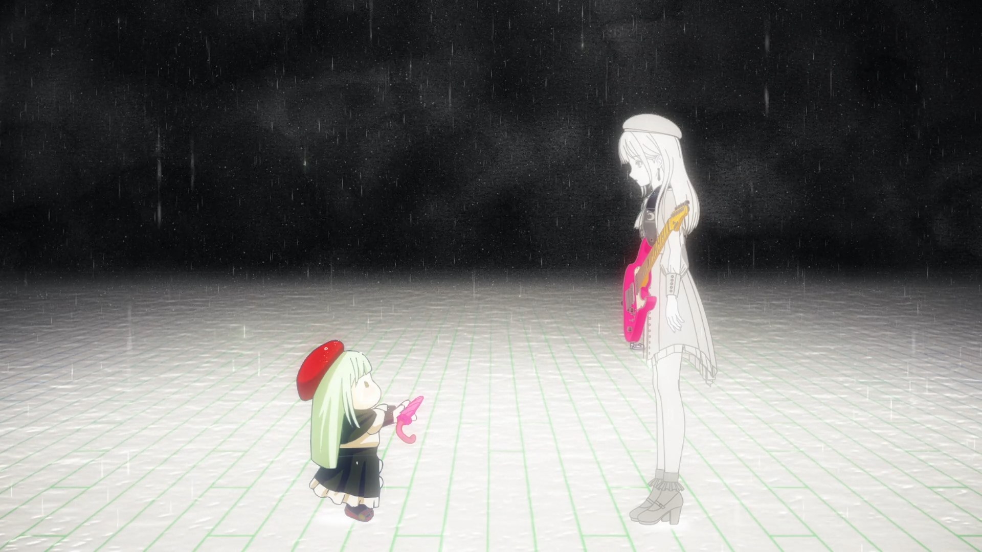 Барабанщицу НЯЯ^_^МУ нужно пиздить и гнать, у неё какое-то дохуя своё мнение и своими действиями прямо подрывает деятельность и политику группы, охуел с её лицемерной телеги про, что надо думать о других людях, когда она все четыре серии делала только то, что выгодно лично ей, вовред другим участникам. Сакико хорошая девка, но явно недотягивает до требований к руководителю поп-группы тупых пёзд, её никто не уважает, с ней постоянно спорят, — а что она сделает с другими тёлками? отпиздит их? — но её просто искренне жаль в этой ситуации. Третья баба вообще замкнутый аутист (будто солистки МайГо нехватило) и у неё начинаются шизофренические приходы и раздвоение личности из-за срачей этих сук. Юмири и Юика лапушки няшочки адекваты, ведут себя как профессионалы среди этого балагана.