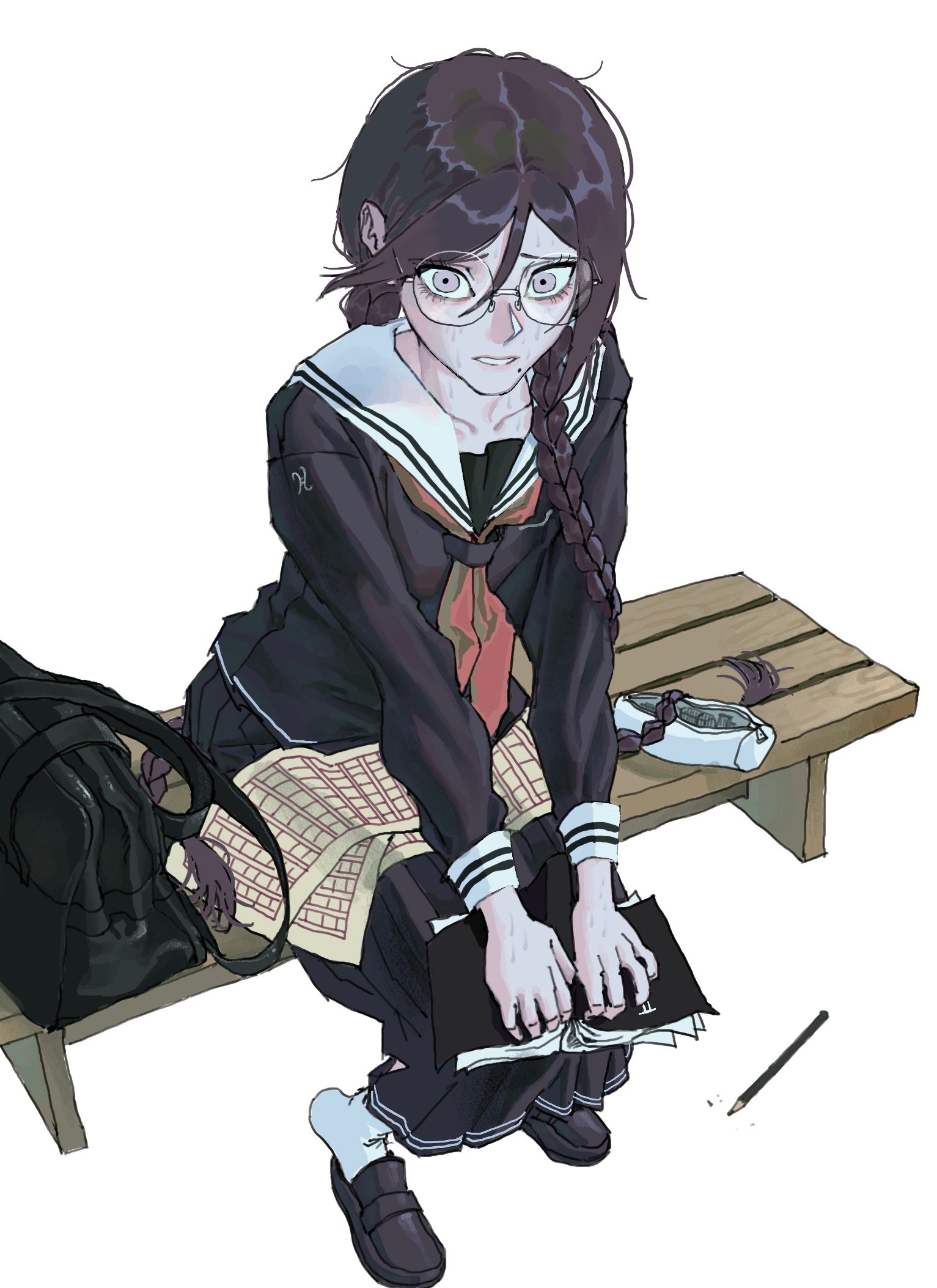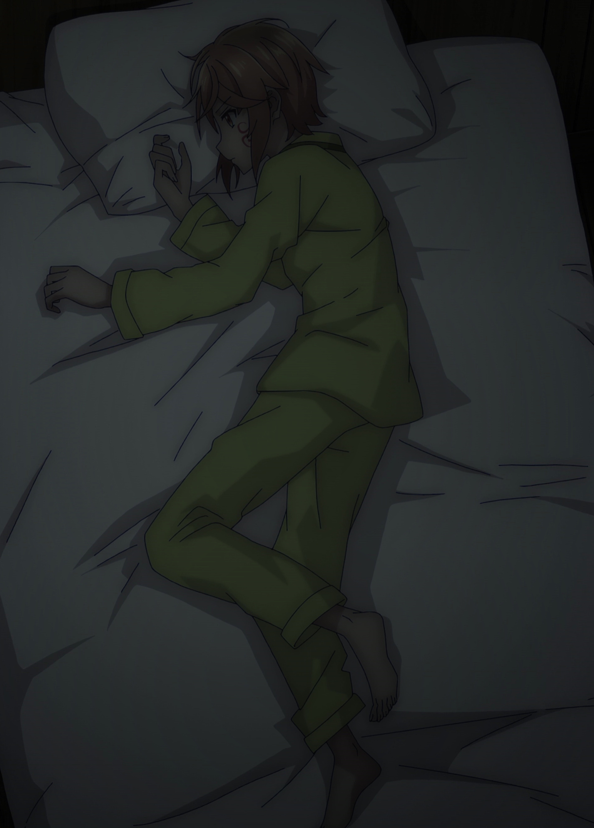 >She avoided my gaze, but she didn’t look particularly upset either. When I pressed my lips to her palm, her arm twitched slightly, and I slid my tongue between her fingers. >「Sendai-san!」 >Miyagi, who rarely raised her voice, exclaimed loudly as she smacked my arm. Then, she dug her fingernails into my uniform. >The dull pain made me let go of her hand, and she immediately pulled out a tissue from the crocodile-covered box, wiping her fingers. >I had seen her do this many times before, and it had never bothered me. >But for some reason, seeing her do it today made it feel like she was trying to wipe my entire existence away. >It irritated me. >No, more than that—it infuriated me. >I reached out, brushing my fingers against her neck. Miyagi flinched back slightly, and even that small reaction was enough to set me off. >I grabbed her and pulled her close, pressing my lips to her cheek. >She’s definitely going to resist. >Or at least, that’s what I thought. >Instead, Miyagi wrapped her arms around my back, pulling me in even closer than necessary. >「… Miyagi?」 >But instead of replying, she blew air into my ear before pressing something hard against it. I immediately recognized it as her teeth and could already tell what was coming next. Before I could pull away, Miyagi bit down. >「Ow!」 >I exclaimed, but she didn’t let go. Instead, her teeth sank in deeper, sharp pain shooting through my ear as if she was about to tear it clean off. I grabbed her by the shoulders and pushed her away. Наброс на Мияги.