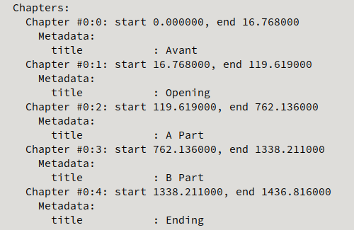 Это создаст файл metadata.txt, который будет содержать информацию о главах. Они обычно выглядят примерно так: