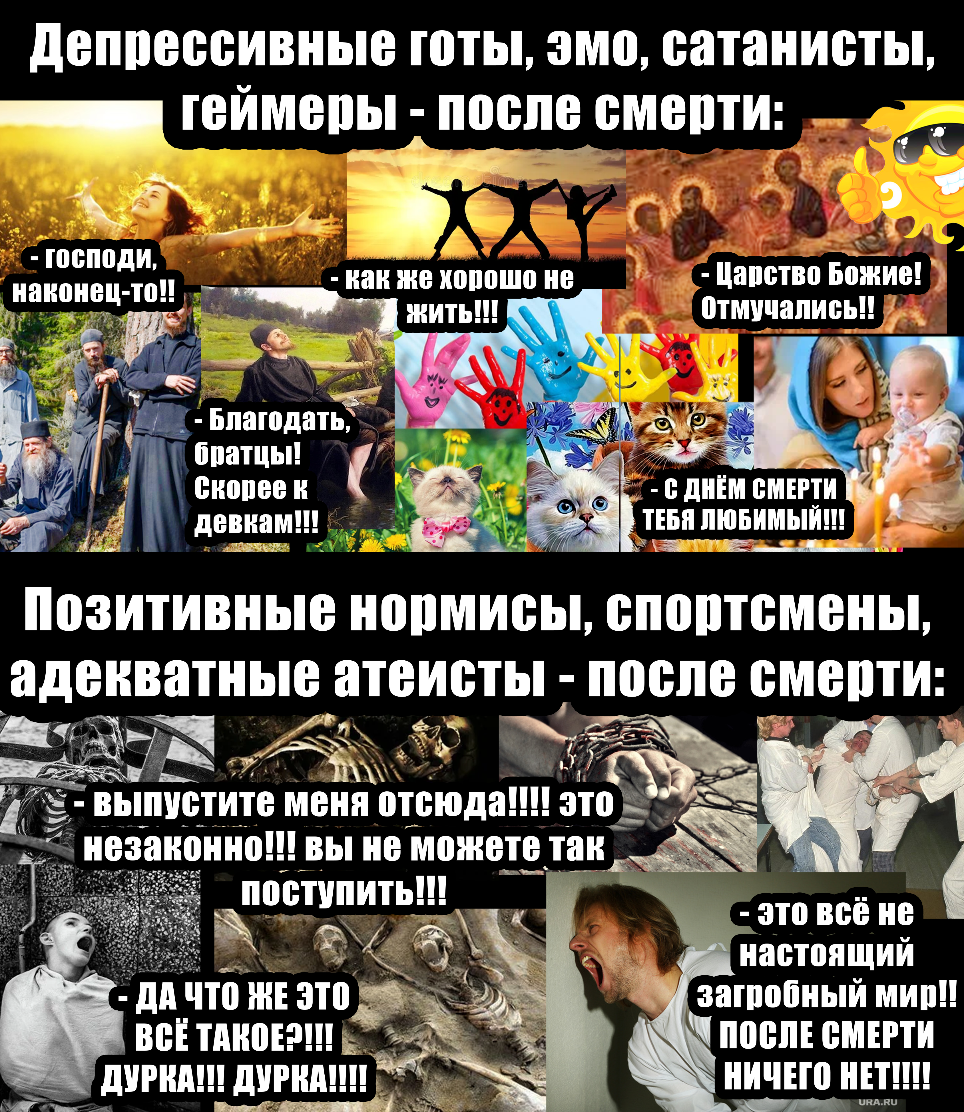 >>660801 Другие души. Твой путеводитель, верховный совет душ, твоя текущая группа, души, которые выше тебя в развитии. >>660812 Это твои земные мысли. Потому что ты мыслишь земными понятиями. Но после смерти все твои привязанности перестанут быть важными. Не воплощаются только сильно развитые души, им этот мир предельно понятен. Можешь воспринимать это как ту серию Рика и Морти, где Морти дедом жил. Вот и ты можешь родиться кем угодно, может даже на другой планете. Когда ты знаешь, что ты не можешь умереть, зачем тебе от этого отказываться? Тем более, что душа оставляет тело до смерти мозга, так что смерть может быть не такой болезненной.