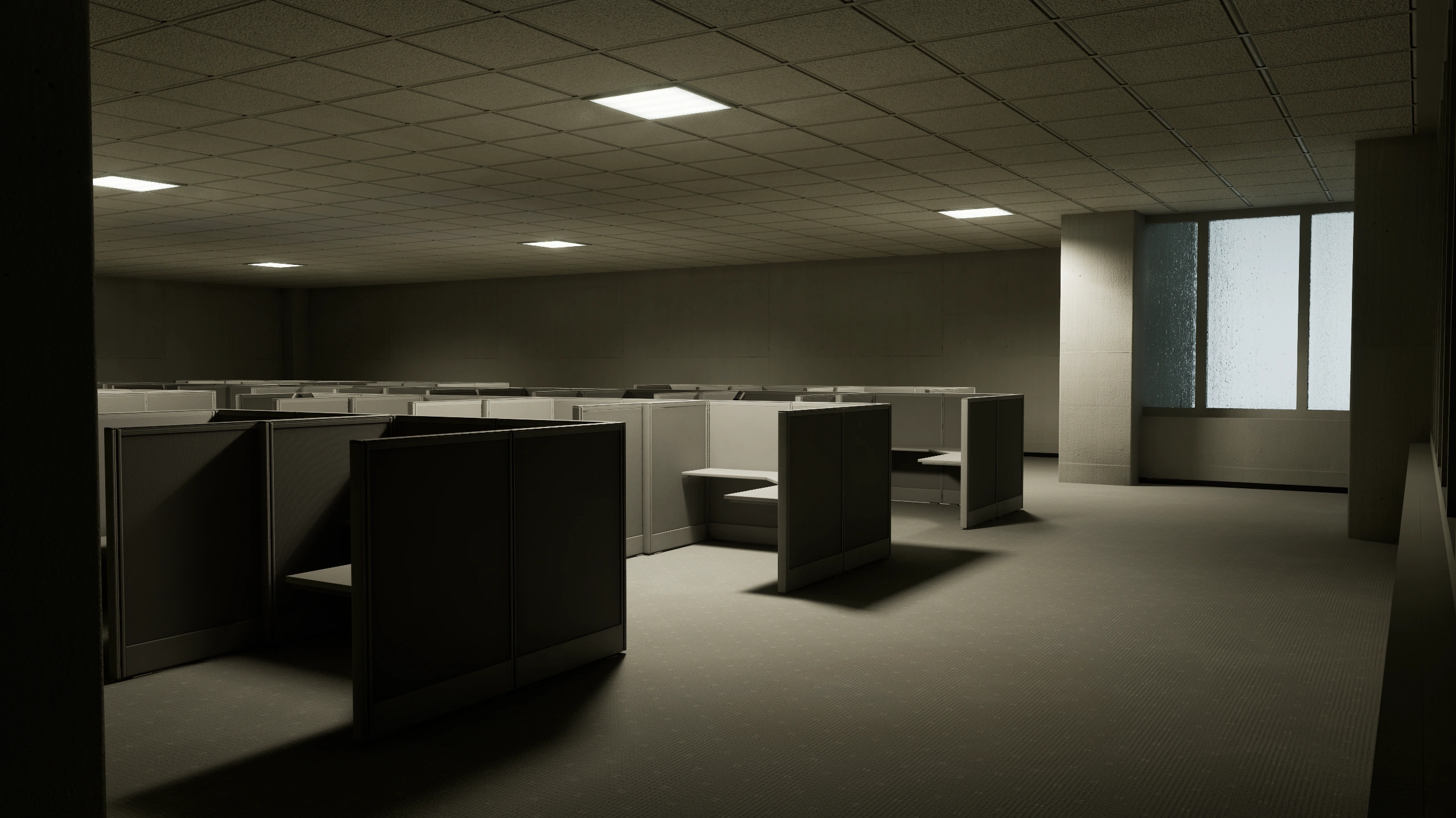 Золотой куб с рельефными гравировками и барельефами, рассказывающими о какой-то святой истории, висит на массивных золотых цепях в тёмной и колоссальной проклятой древней подземной локации, напоминающей одновременно канализацию и огроменный, длинный зал замка с колоннами и мрачной архитектурой. На дне видны тёмные текучие воды, а на стенах и столбах снизу - налёт проклятий с еле заметной цветастой текстурой, как у бензина в луже. Золото потускнело от времени и проклятий. Локация настолько массивна, что куб с рёбрами более двух метров выглядит совсем небольшим. Куб расположен даже не по центру - он просто висит на цепях между столбами у потолка в углу локации.