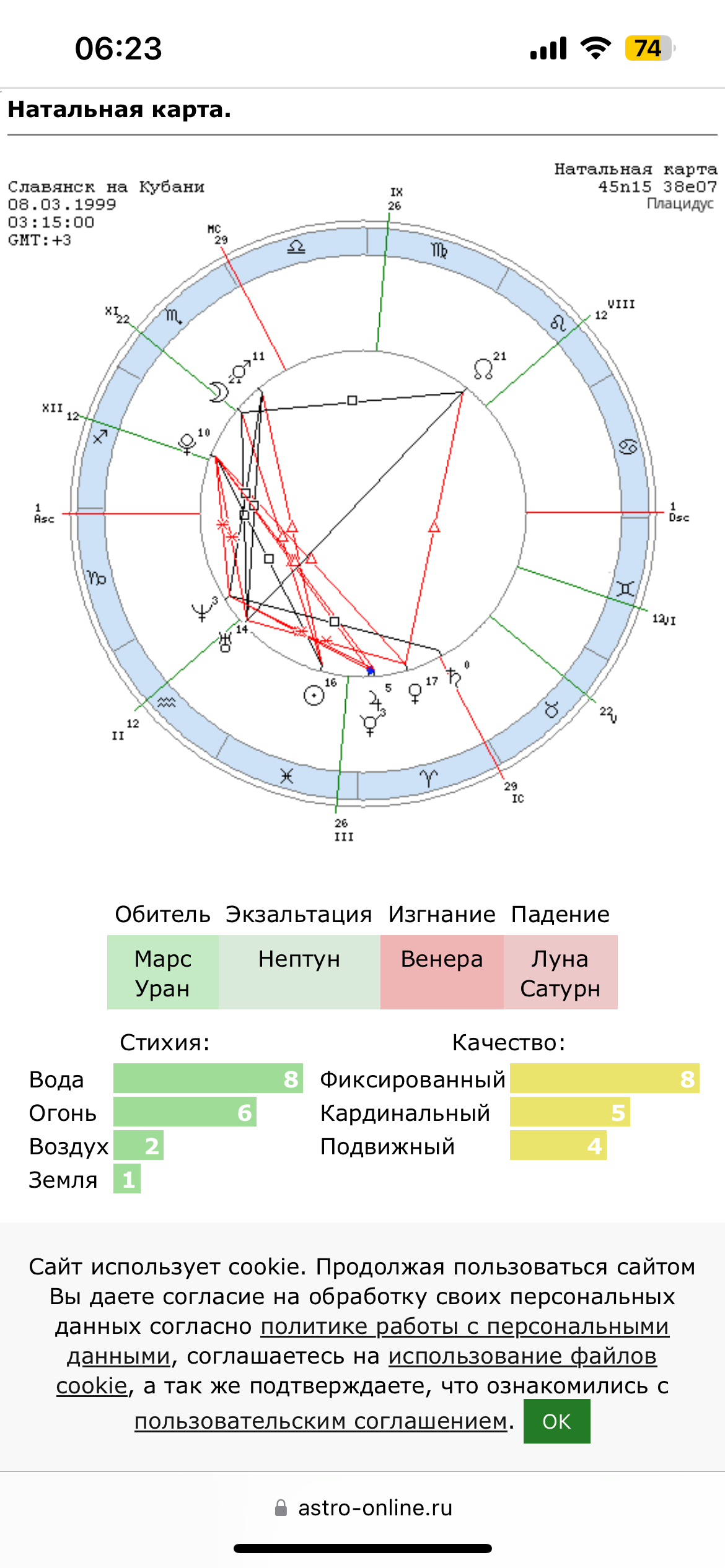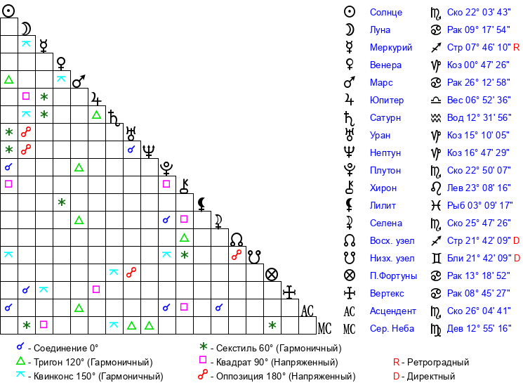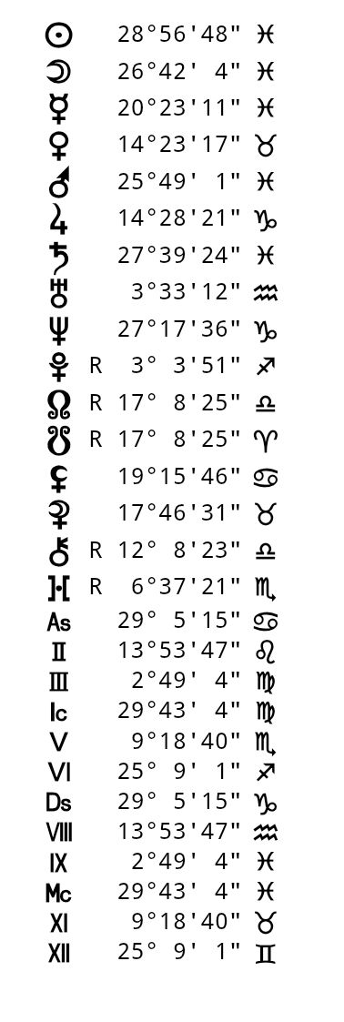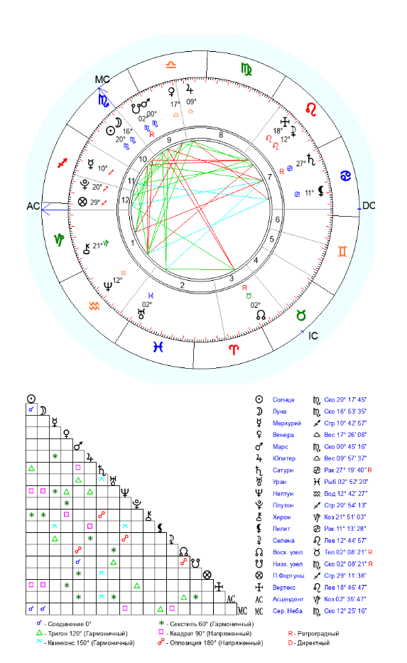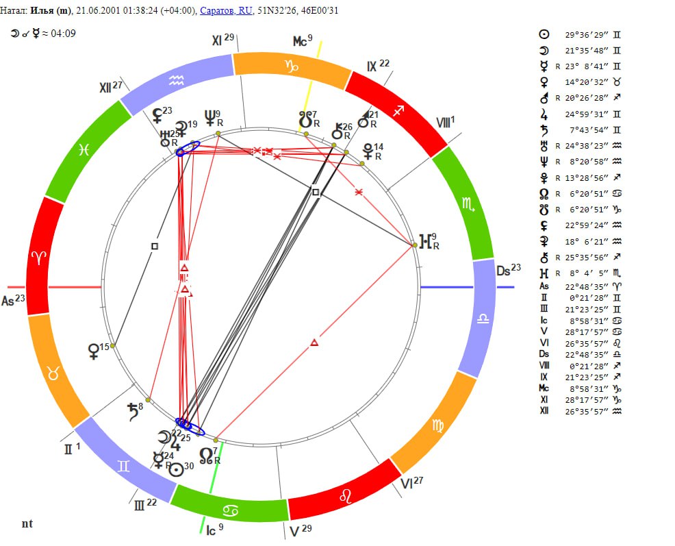 Приветствую аноны, будьте добры разберите карту. Пол мужской, время со слов матери близко к точному, на бирке при рождении стояло оно. Хотелось бы узнать расшифровку в целом, но уделить внимание стороне личных отношений и творческим способностям. Либидо сильное, девушек в жизни было много, но 90% из них если не больше это случайные, краткосрочные связи. Всё что было с серьезным подтекстом заканчивалось не в мою пользу от слова совсем, и переносил это всегда плохо. Не пойму что делаю не так, когда пытаюсь наконец-то остановить всё на одном человеке всё рушится. В плане творчества, есть кое что чем планирую заняться, но не могу никак решится, хотя периодически нахожу подтверждения того что у меня есть к этому способности, возможно даже очень сильные способности. Хотелось бы разобрать эту сферу.