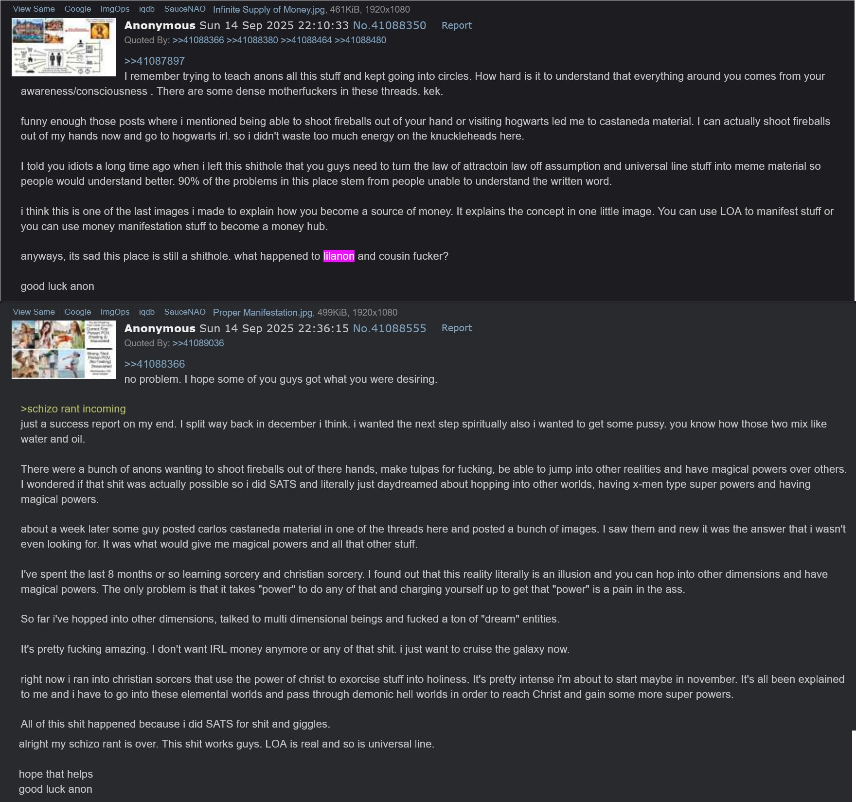 Ну вообще нет или, по крайней мере, в большинстве своем нет. Там разные направления изучаются, поэтому много разных людей. (Хотя шапка пропагандирует Годдарда) Кроме того, есть свои известные аноны, вроде LilAnon, который появился в тех тредах, что я упомянл (Как там написали "Король вернулся!"). Недавно какой-то еще один анон-селеба вернулся и сказал, что на людей только мемасы работают, чтобы донести смысл, а не слова. Я вот изучаю, они достаточно интересно пишут.