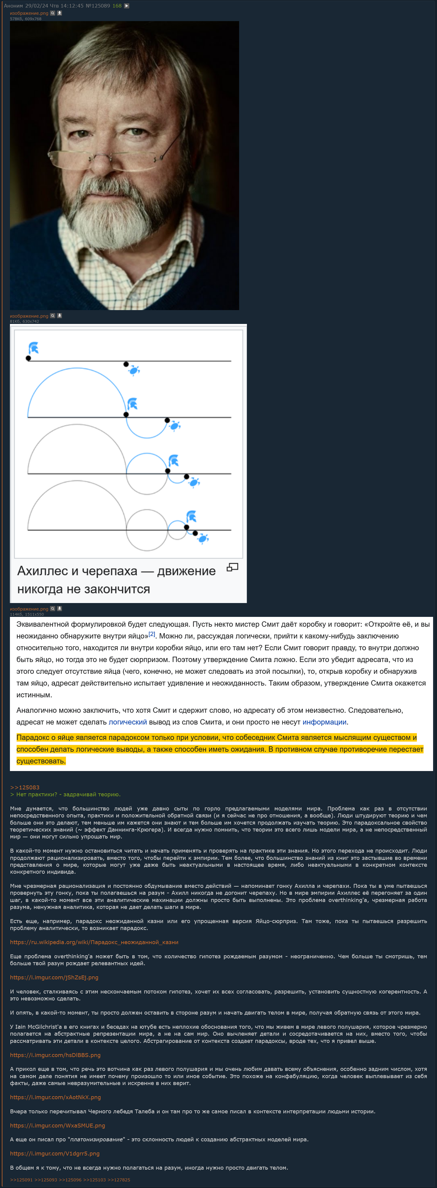 >>689318 В куда ты развиваешься? В отсутствие результатов и "мотивации" друг друга бесконечно наяривать в одних и тех же тредах? У вас тс тред был? Был. Результаты есть? Нет. С чего вы взяли, что у вас не будет тоже самое от Годдарда? У тебя полыхает потому что у вас нет нихуя, ни знаний, ни умений, ни опыта, ни понимания, что практика - вещь вторичная. Но тебе же очень надо высраться, думая, что ты всё знаешь. Завтра вы вообще найдёте какого-нибудь условного Мёрфи, будете его наяривать, и так до бесконечности. Писать на доске просто перестало иметь смысл, слишком много токсичности. Насчёт развития, одну мою статью на не очень известном сайте прочитало уже под тысячу человек меньше чем за 2.5, а суммарно 2500+-, по вашему я не вылез, а вы не в загоне. И это даже не десять статей, гораздо меньше. Представляешь что будет, если я в соцсети вылезу и буду там наяривать активно, вылезатор комнатный? Мышки уже натрансёрфили? Спешно можешь банить.