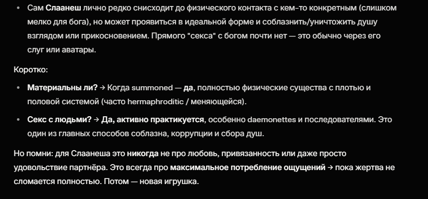 Поспрашивал грок, про Слаанеш ваховский. Видимо, их лор писал, кто-то сильно погруженный в Лилито-cуккубовскую тему. Буквально по лору Слаанеша можно всю природу суккубов изучать.