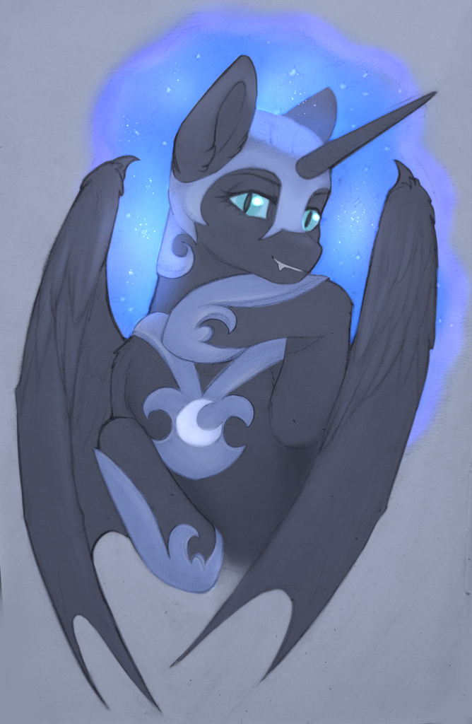 Лунная пони она же Nightmare Moon, Mare in the Moon — Кошмарная Луна,Лунная Кобыла или Черная кобыла а проще Луняша.