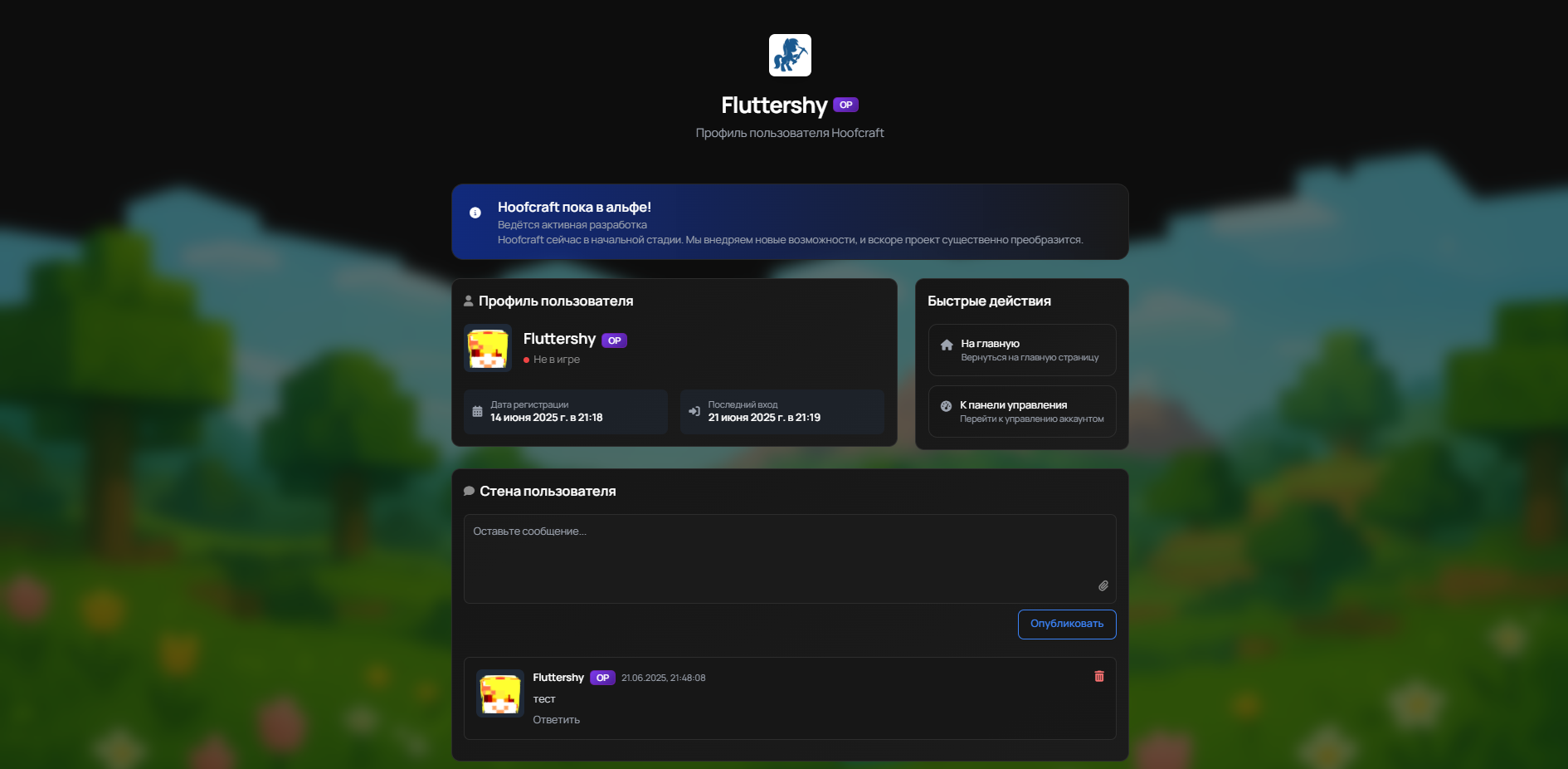 На хуфкрафте будет ещё и социальная составляющая, можно будет добавлять челиксов в друзья, смотреть кто когда заходил, мб даже аналог стены вк запилится