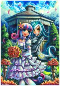 Ты заходишь на летнюю кухню, где пахнет пряными травами и ветерок играет кружевными занавесками в открытом окне. Лира священнодействует у плиты, помешивая варево в кастрюле и что-то напевая себе под нос. Ты неслышно (как тебе кажется) подкрадываешься к ней, но тебя выдаёт предательски скрипнувшая половица. - Привет, Анон, - пони улыбается и обнимает тебя ногой. - Скоро будем кушать, поможешь мне с тарелками? - Привет, - говоришь ты, - конечно, - и обнимаешь её в ответ, на мгновение уткнувшись носом в пышную гриву... а в следующий момент оглушительно чихаешь. Лира смеётся. - Ой, Анон, кажется это перец. Уронила коробку с полки, видно что-то попало и в гриву. - Я знал, что ты горячая штучка, но чтоб настолько... Лира хихикает. - Что, прям горячая? - Ага, перчёная. Вы смеётесь оба.
