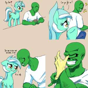 - Будет сделано, миледи! - ты со скрипом пододвигаешь стул ко столу и зарываешься пальцами в её гриву. Пони мурлычет от удовольствия. - Хм, миледи? Звучит благородно. О да, человек, продолжай, да, да, это определённо твой счастливый билет, Лира...
