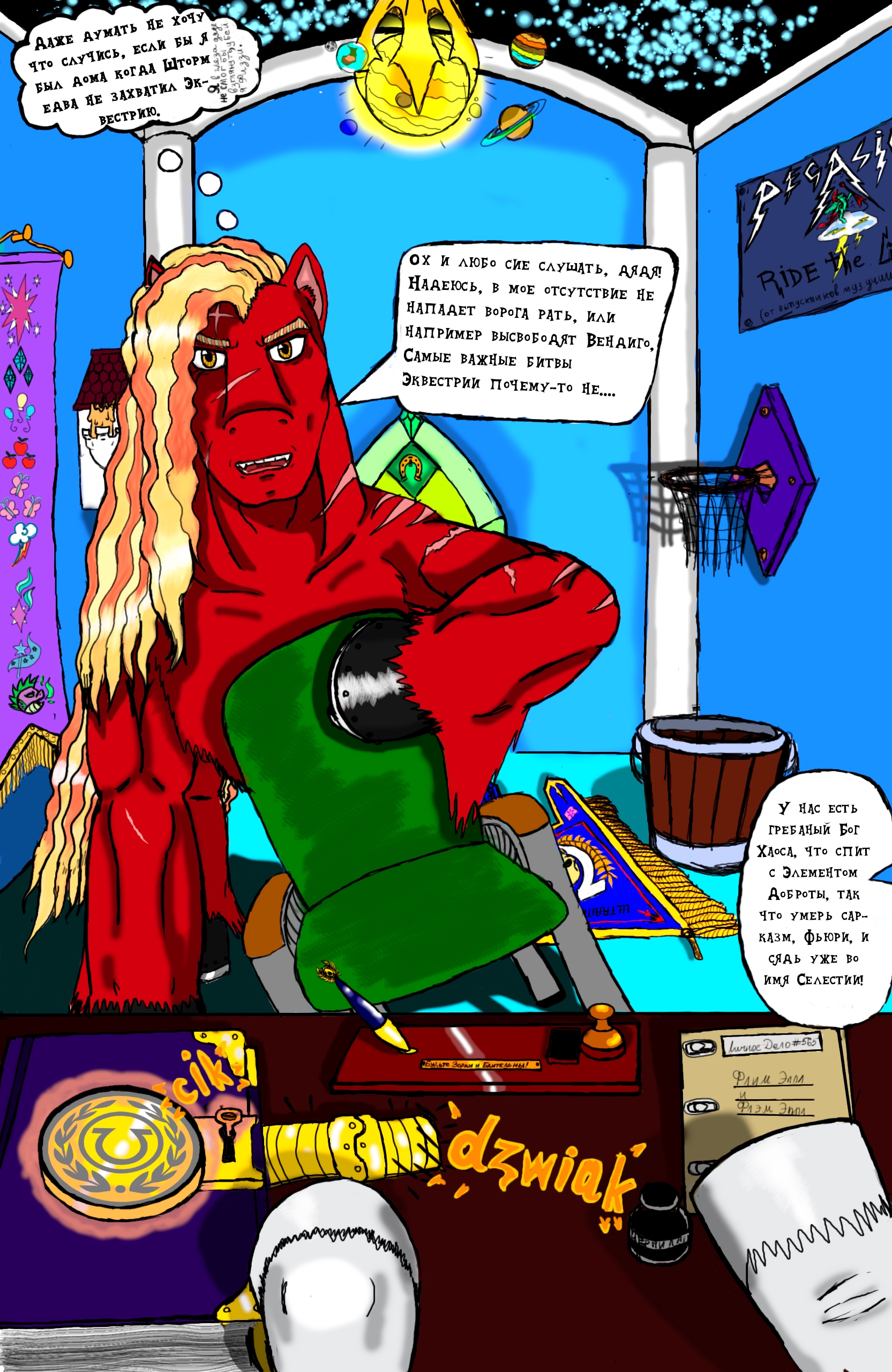 >>4433853 Сэр Фьюри Эклипс он же носитель прозвища Вендиго Кантерлота(как и его предки) - член рыцарского рода Шайр Сворд(Шайр это порода британских тяжеловозов, самая огромная порода коней они в холке 185 см), он результат генетической селекции сильнейших представителей всех трех рас. В этом роду сильнейшие трахаются и женятся только на сильнейших. Физически и магически. Социальный статус им безразличен. В нем просто сильнее всего проявились гены первого предка - КОНЯ, а не пони Шайр Сворда. Его отец тоже немаленький, но сыночек в рост пошел на полголовы выше. Репутация у него своеобразная. Его боятся даже союзники. Потому что получив приказ убить кого-то из дворян - он спокойно его выполнит. Он убил Блюблада по приказу Селестии, потому что Селестию задолбали выходки, а опосля Галы когда тот оскорбил одного из Элементов Гармонии - его участь предрешена была. Потому друзей у него почти нет. Ну и из-за кьютимарки. Он до сих пор не знает свою судьбу. Но не отчаивается. Некогда. Надо защищать Эквестрию от врагов пострашнее Тирека.