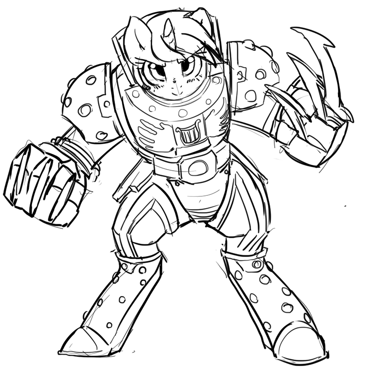 На самом деле я набросал на бумажке этот кусочек только чтобы быстро показать в каком месте должна быть резинка на поясе куртки, и отправить это человеку, чтобы тот понял. Но голова Твайлайт как-то сама собой образовалась, короче вот.