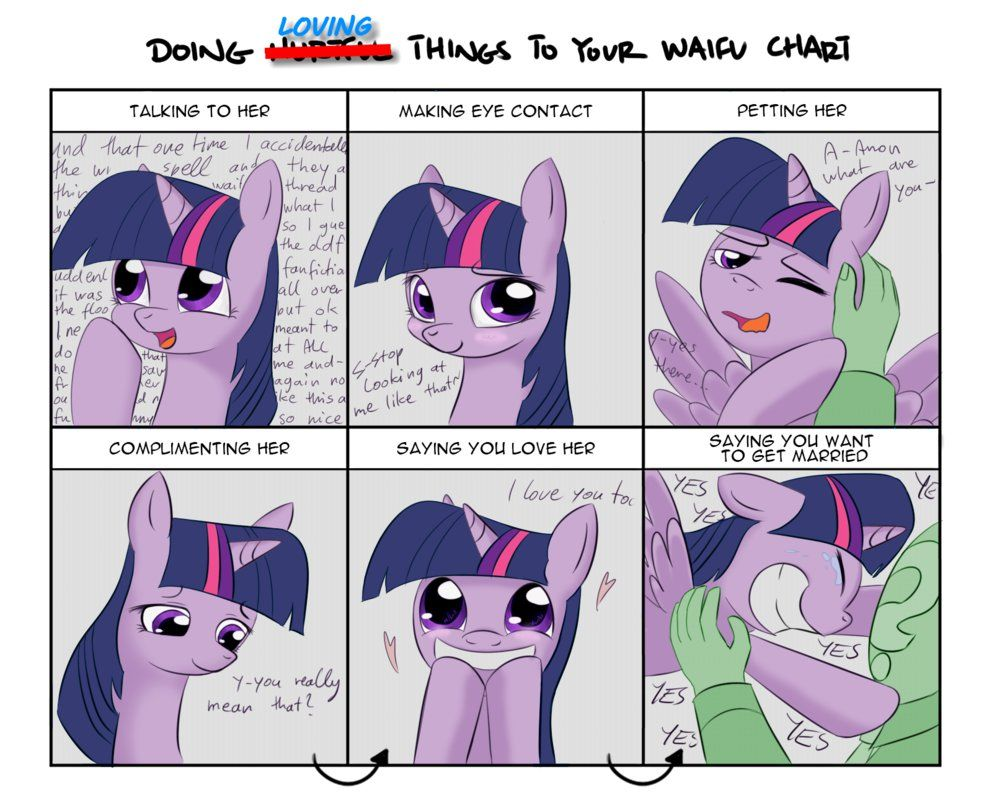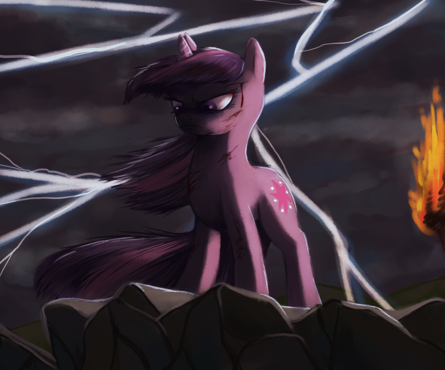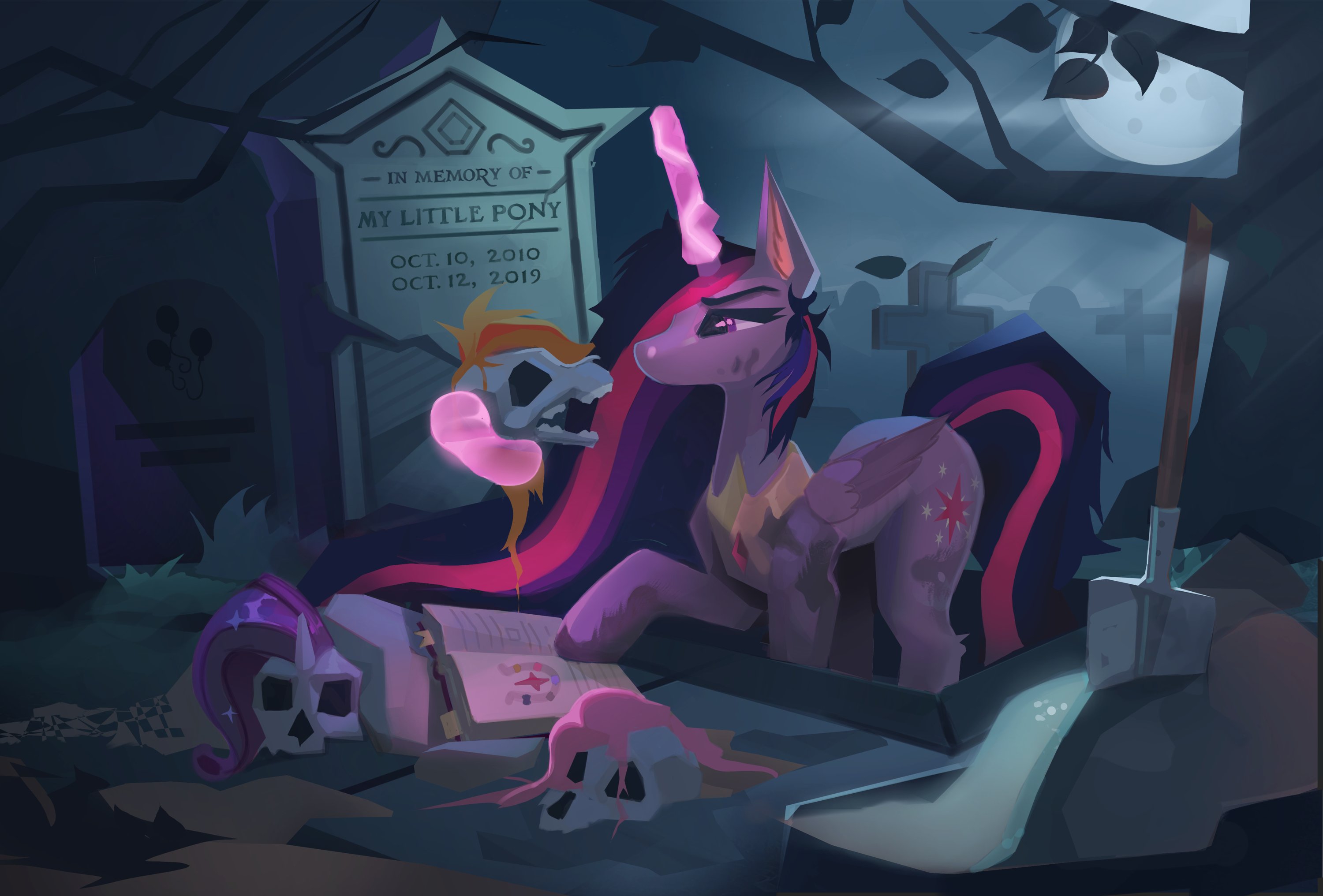 Человек ещё долго переговаривался с машиной, и с каждым отправленным сообщением её тон всё больше напоминал о некой лавандовой пони. В конце концов, искусственный собеседник начал использовать такие же слова и выражения, которыми всегда пользовалась волшебница. Его электронный голос становился всё менее притворным, текст на экране сначала поменял цвета, а потом стал обретать и форму, и вот, в конце концов, из монитора вылезла настоящая Твайлайт. Именно её человек и увидел.