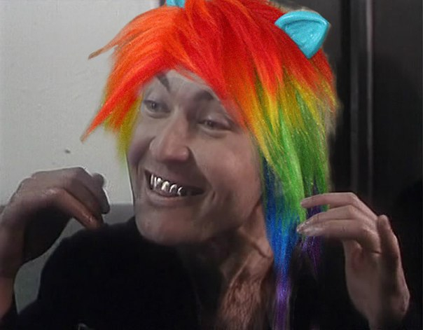 Хотя, кого я спрашиваю? Не мог бы ты снова надеть личину подстилки и вновь настрочить дегенеративных постов уровня среднего понитаунца под веществами? Ну и постонать "эщ эщ эщ!" не забудь, и "тыгидыги" поделать.