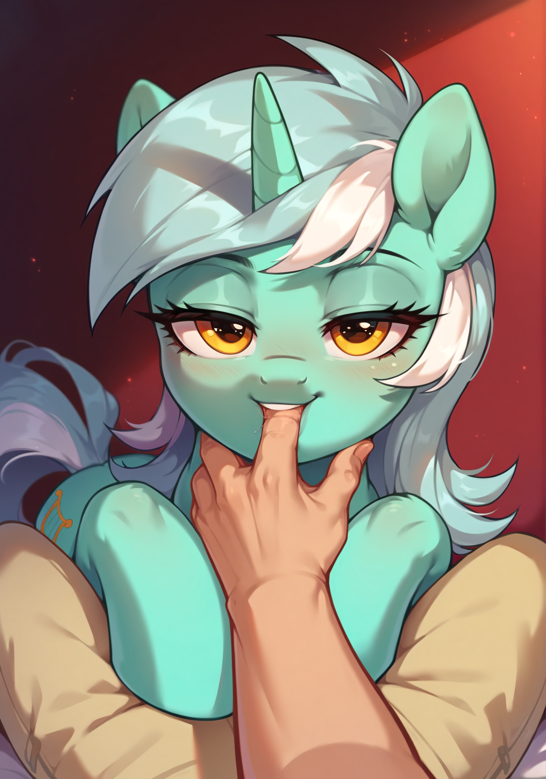 >>4432117 Совершается совершенно обычный кусь - пони слегка прикусывает палец своими белоснежными зубками и легонько проводит по нему язычком. - Спасибо, - говорит она с улыбкой. - Всегда хотела попробовать человека на вкус...