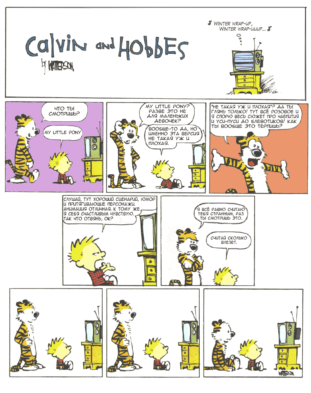 Не очень понимаю чего так у некоторых припекает с поняшных картинок которые появляются на мертвой борде. Хотите чтобы она была ещё чуть мертвее? Или лучше троллить окружающих тем что не умеете в автоскрытие? Сами сериал уже 100 раз обсудили и все подобные обсуждения тонут моментально. Смешно конечно, но тот же мой поняшный фанфик практически никто и не стал читать. Да и на сайте с фиками, если посмотреть, по сериалу довольно безутешная статистика (не только с моим). Нерелейтед обсуждения тоже редко долго задерживаются и самой популярной темой обычно является перетирания костей. Зачем? Чтобы что? Неужели вот настолько важно попытаться ужалить анонима по ту сторону экрана? Он мог вас обидеть или уязвить словами? Это так значит работает? Аноним анониму должен был быть /b/рат, а получилось как всегда. Довольно жалкая картина, как по мне. Если так вспомнить, единственное что в последнее время здесь обсуждалось и не сдулось моментально, так или иначе связанное с поняшами, это полнометражка. И как-то так оно вышло, что даже безобидный постинг картинками и вежливое общение засирается, превращая оставшуюся часть треда в бесконечный генератор срачей. Постишь пони -> будет персональный срач. А если здесь и не интересуются пони, то зачем большинство тогда здесь обитает? Это чувство ностальгии по старым временам? Так ведь они давно прошли и ничего не будет как раньше. Нужно жить настоящим, а не припоминать друг другу старые обиды. Мы вообще один сериал смотрели? Странно, но да ладно. Забавно, но на том же форчике аноны особо не поливают друг друга, видимо ощущая то что с каждым днём сообщество становится всё меньше и меньше. Постите сами что и как вам нравится. А косвенно генерировать срачи милыми пони как-то не хочется. Пусть этим занимаются остальные причастные - это будет уже на их совести.