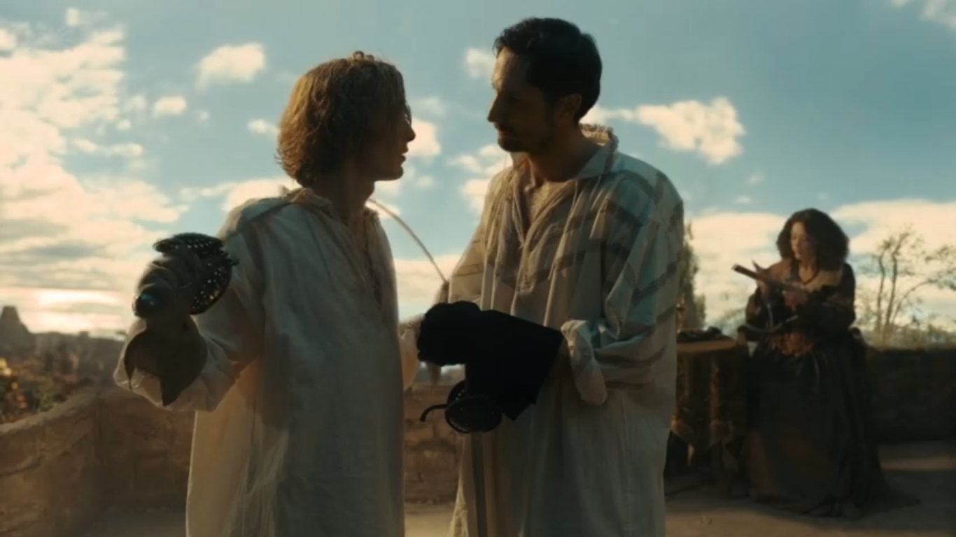 Это Дартаньян, который мартышка на стене, в... Израиле. По совместительству наследный принц а его инструктор по фехтованию Алатристе. знатный правда как гранд испанский, там прямиком с... 30 войны в Европе. Евреи отдельно показаны. Чё, блять, происходит в этом фильме?