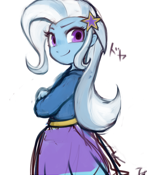 > Мундэнсер. Про это и в бестиарии написано. Я его трипкод забыл. Там вообще смешная история. Я ещё когда только тут появился, заметил, что всем тут обидные прозвища придумывают. Спрашивал, забабахают ли мне какую-то кличку, но тогда попросили сначала раскрыться в общении. И то ли я просто слишком серая масса без каких-либо особеностей, то ли наоборот самый настоящий Трикстер, но меня так и продолжили называть по аватарке. Так что если я вдруг надену ещё лошадь поверх 3X1E, то как меня тогда называть? ТриксиЛулаМунДэнсер? ЭтотСамыйНуКакЕго? Или так и будет Трикси, что не имеет особого смысла? Да и к Трыксистанчику я уже привык как-то Так что если я и буду постить ТанцораКоторомуНичегоНеМешает, то отдельно от Триксы. Если конечно между ними не возникнет диалог.