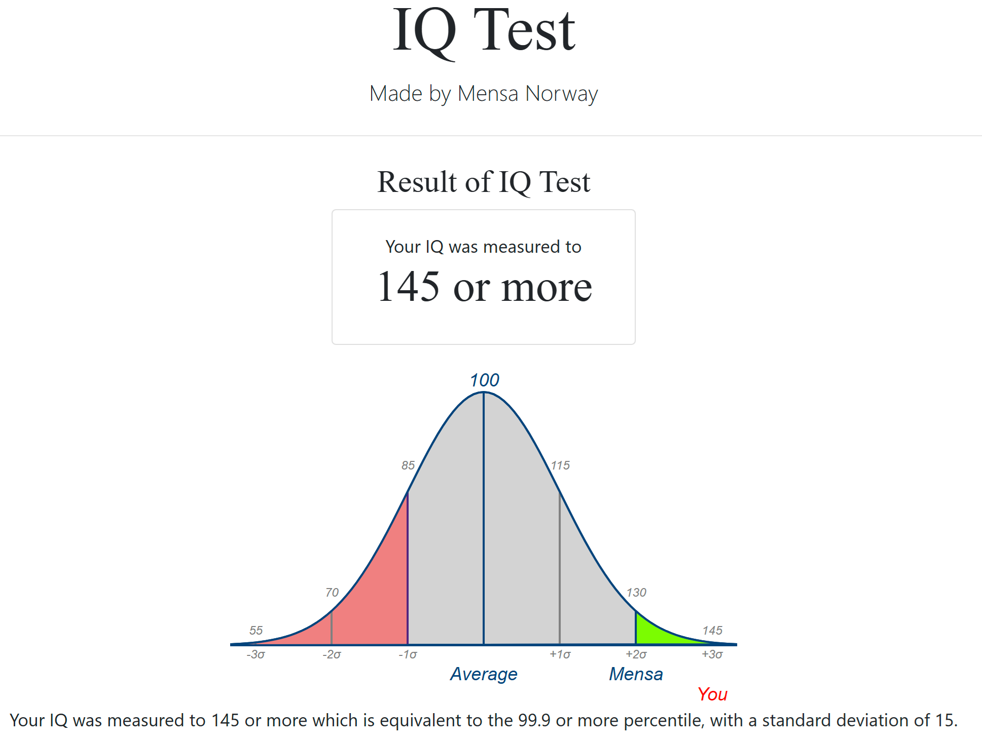 >>4438255 У тебя такая фиксация на iq, я все жду этого числа от тебя. Тебе же не стыдно его называть? Или ты даже не мерил? А я наверное все тесты проходил, которые были, и на iq, и на типы личности, на всю хуйню кароч.