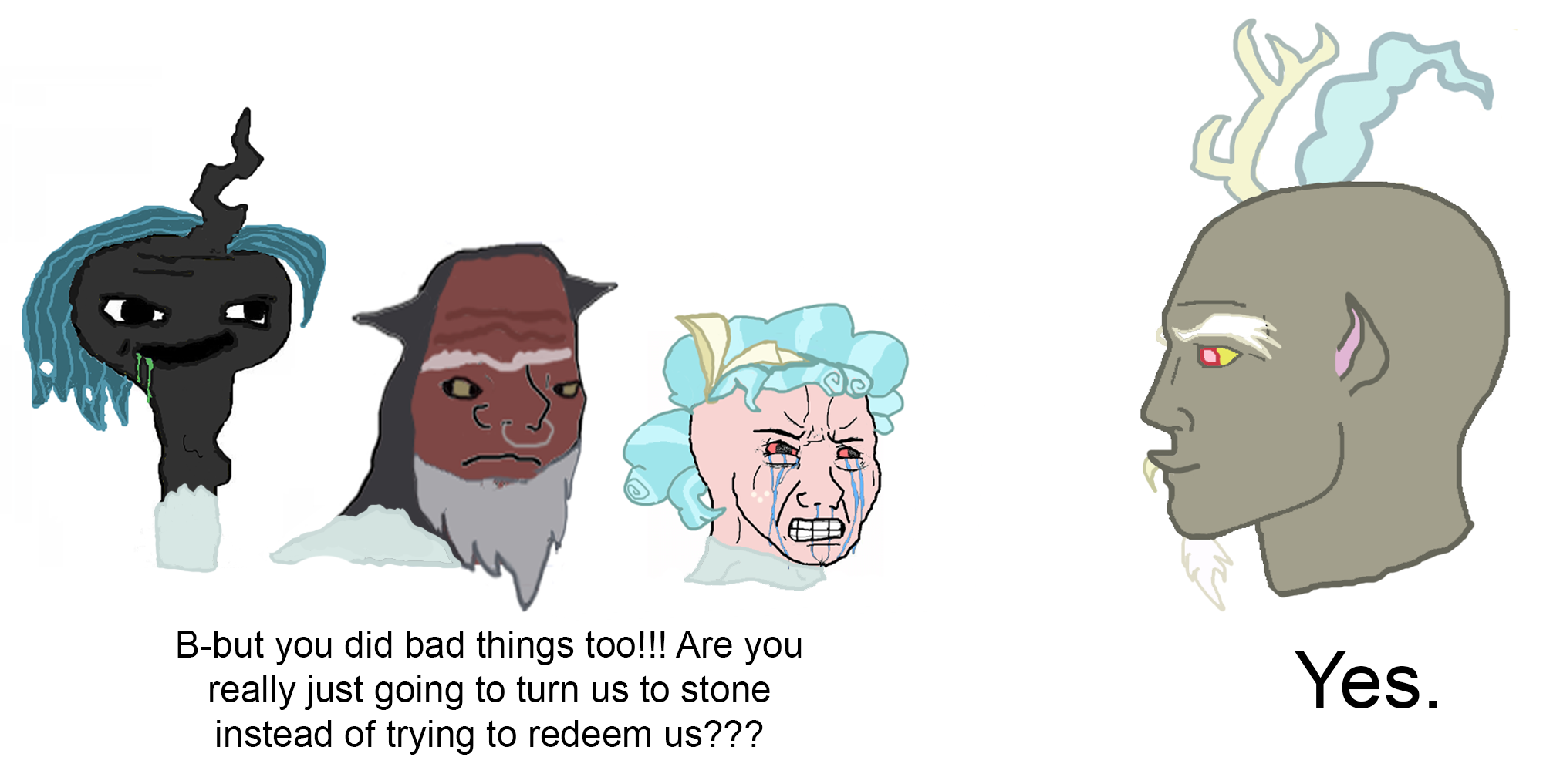 Та самая Королева Кризалис Ancient_Mommy сейчас в тюрьме сидит, держу в курсе. На её участке нашли повешенный на дереве труп со следами пыток и насильственной смерти, в чём её и обвинили