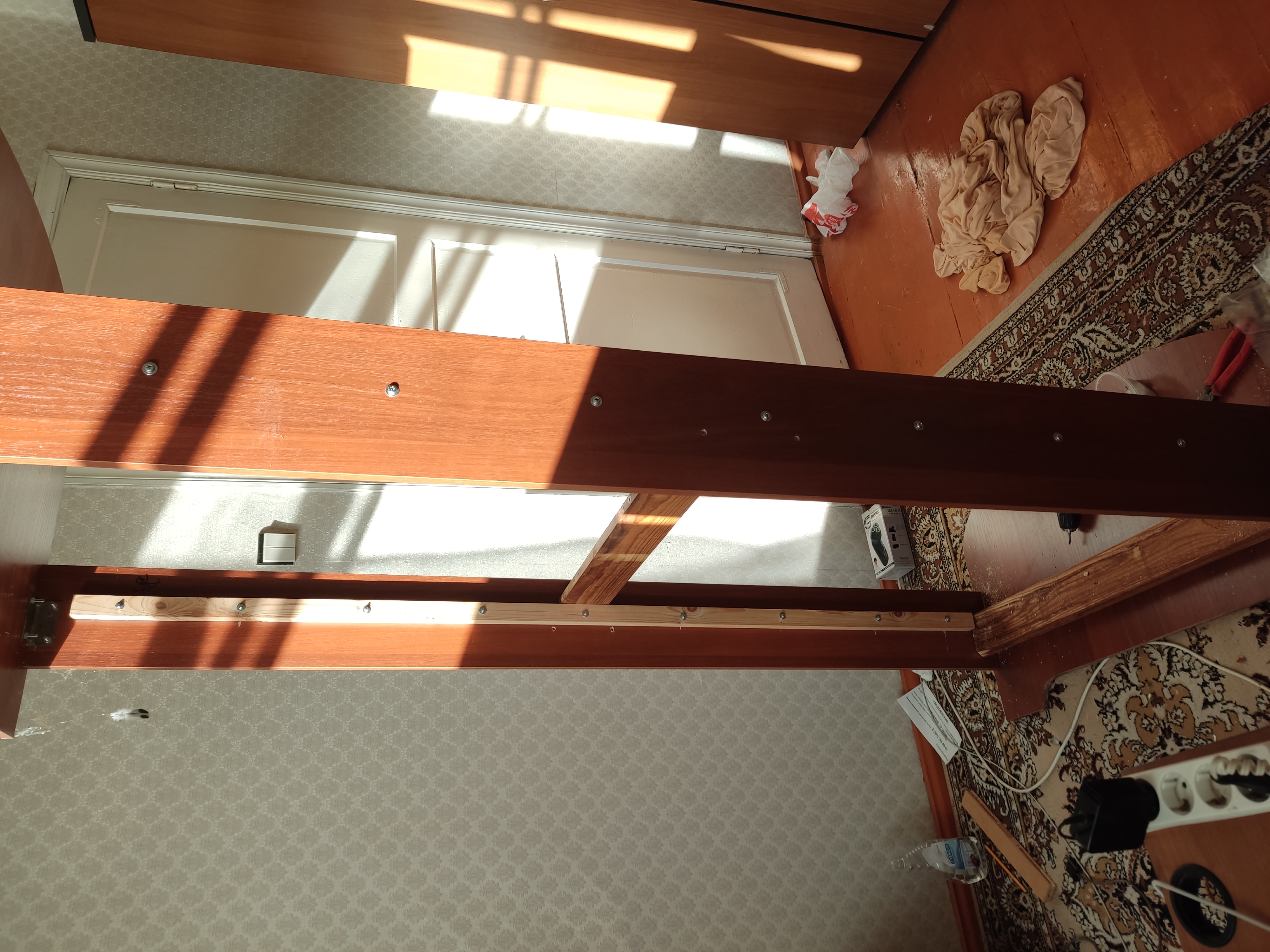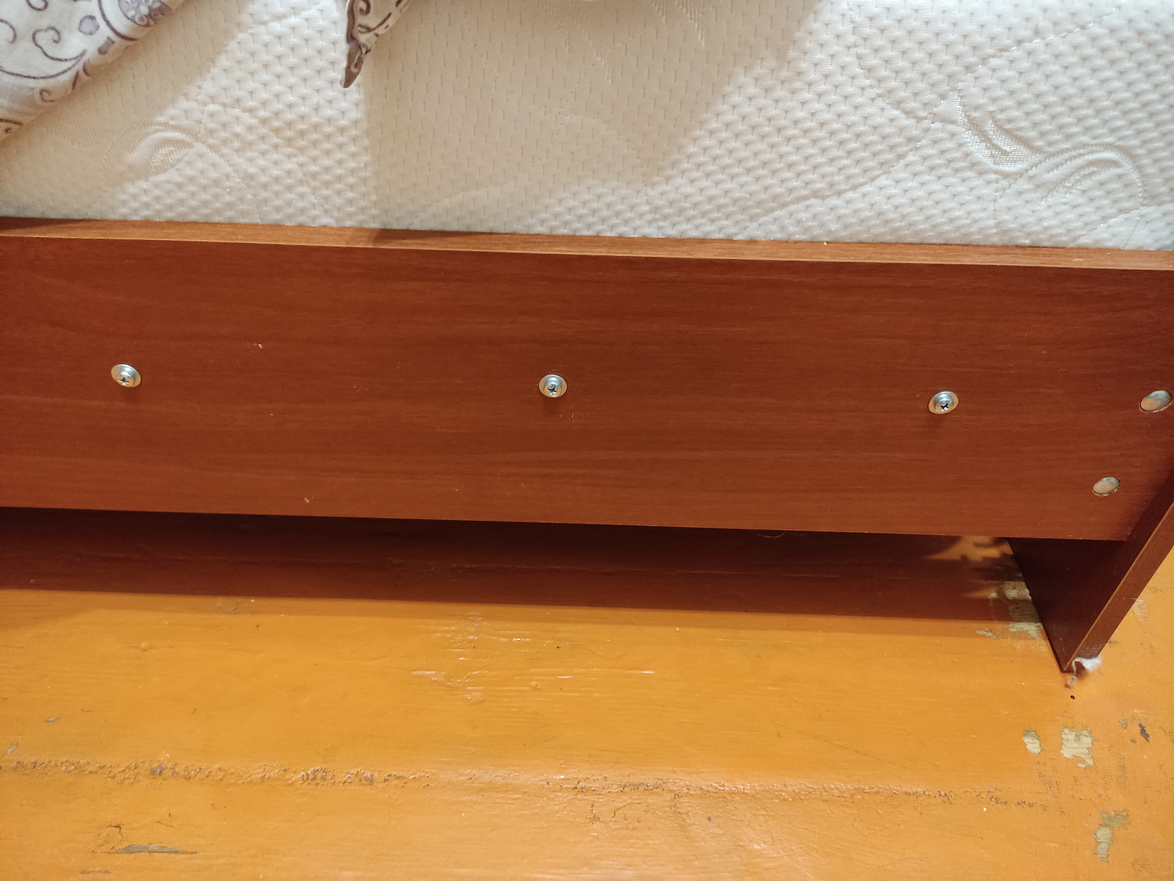 Блять... а зачем топить болты в древесину не говоря о доске из прессованных опилок на клею... На аэродинамику с эстетикой кровати плюс функции это не влияет. Нам на кровати не летать по итогу. Тем более, болты хромированные (оцинковка по факту я так думаю, ну не будем доёбываться, суть ясна)