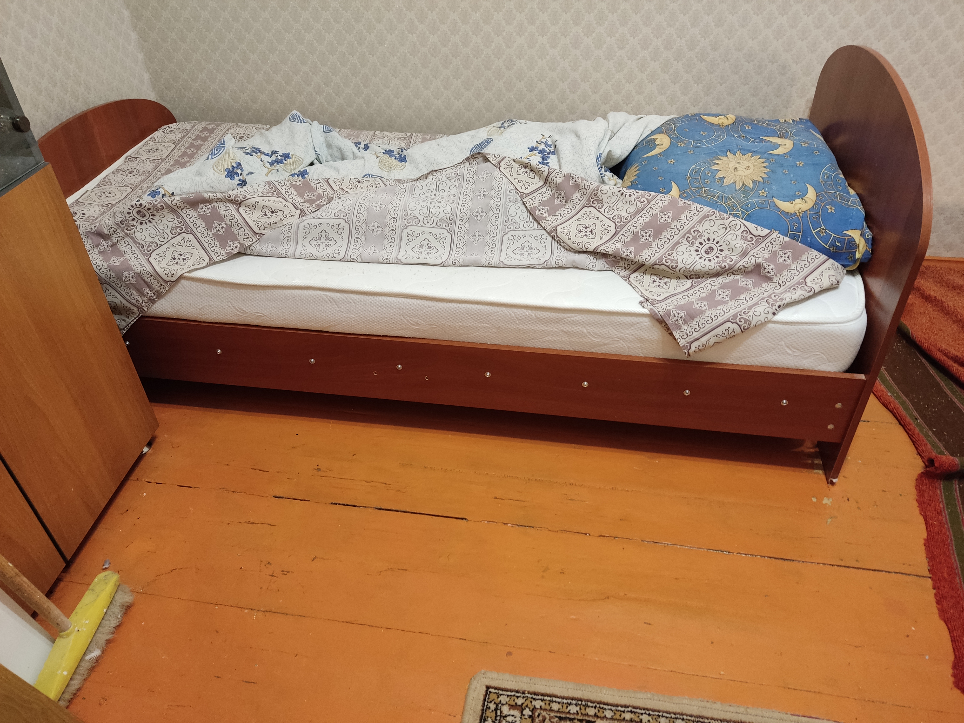 Я чихнул и разъебал кровать. Говно кровать из опилок. Щас зараза ходит и я как в некотором смысле доктор, больше всех на ногах. Гульку спас от кровопотери разорванных мышц. Буду по-японски спать