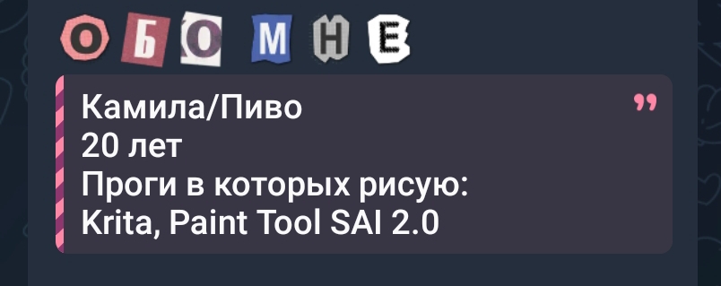 >>4440367 Ну а что ты вообще смотришь? Сериалы по НТВ? Какое-нибудь зарубежное гавно? Мультики 0+ для детишек? Фильмы? Альтернативы то всё равно нет особо. Только игры не все да книги для мамкиных илитариев остаются, из того что ещё можно считать GOD TIER по сути. Ты, наверное, сейчас начнёшь кудахтать про общество и мнение окружающих. Думай как хочешь, но лично у меня при включении любого сериала возникает стойкое ощущение, что я превращаюсь в какого-то облысевшего батю, убивающего время на устарелую хрень. И самое забавное, я ведь ни разу не ошибся, большинство сериалов реально унылая параша, актёрская игра там чаще всего на уровне школьного театра. С фильмами та же история. Тем не менее к маняме у меня другое отношение. Это всё-таки мультипликация, рассчитанная на разные возраста, разный уровень восприятия и разные темы. Нарисованные персы вместо актёров с их скуфьими человеческими уродливыми ёблами, думаю в этом между манямешниками и млпгосподами есть общее, и те и другие не особо чтят того что связано с ирл. >анимешную тусовку Не знаю о чём ты. Без задней мысли смотришь чё по кайфу и всё.