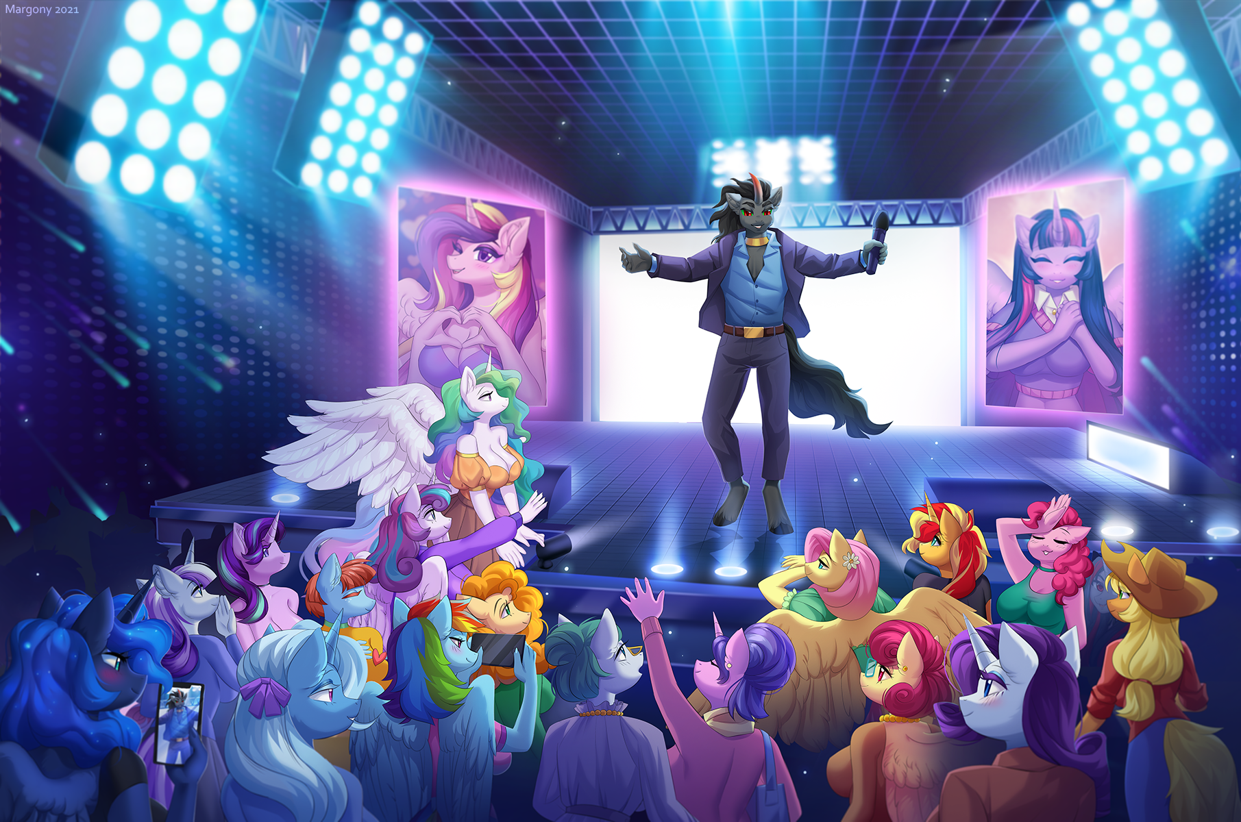 His mind was divided between Cadance's wet pussy milking his shaft, and the many dirty things he was going to do to that helpless guard captain. He imagined him in tight leather, elaborate rope, chains hanging him from the ceiling, with that thick cock locked in a chastity cage. He had captured his sister and her friends, so maybe he could do something to him in front of her… or with her…