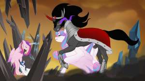 Сомбра медленно повёл головой, его грива переливалась в сумраке зала. Он неспеша поманил к себе Фларри Харт. Его копыто легло на её холку, притягивая испуганную кобылку ближе к трону.