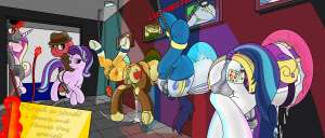 А женится Его Величество на принцессе Фларри Харт, когда она подрастет. "After he successfully took over the Crystal Empire, King Sombra decided to take the young princess as his bride. Sure she protested the marriage, but that's not a big deal to him. The ceremony still happened and he brought her to the bedroom to give the filly her very first taste of a stallion. The very first taste of the rest of her life.