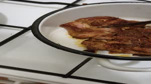 Приходишь домой, закидываешь мясо в пакетик который бесплатно дают в магазине, туда закидываешь всю пачку приправы. Болтаешь немного внутри мясо. Завязываешь пакетик и сверху ещё один такой пакетик и тоже завязываешь. Ставишь кастрюлю с водой и прямо в холодную воду кидаешь пакет с мясом на средний огонь и ждёшь тупо 2 часа. Через 2 часа у тебя готова буженина.
