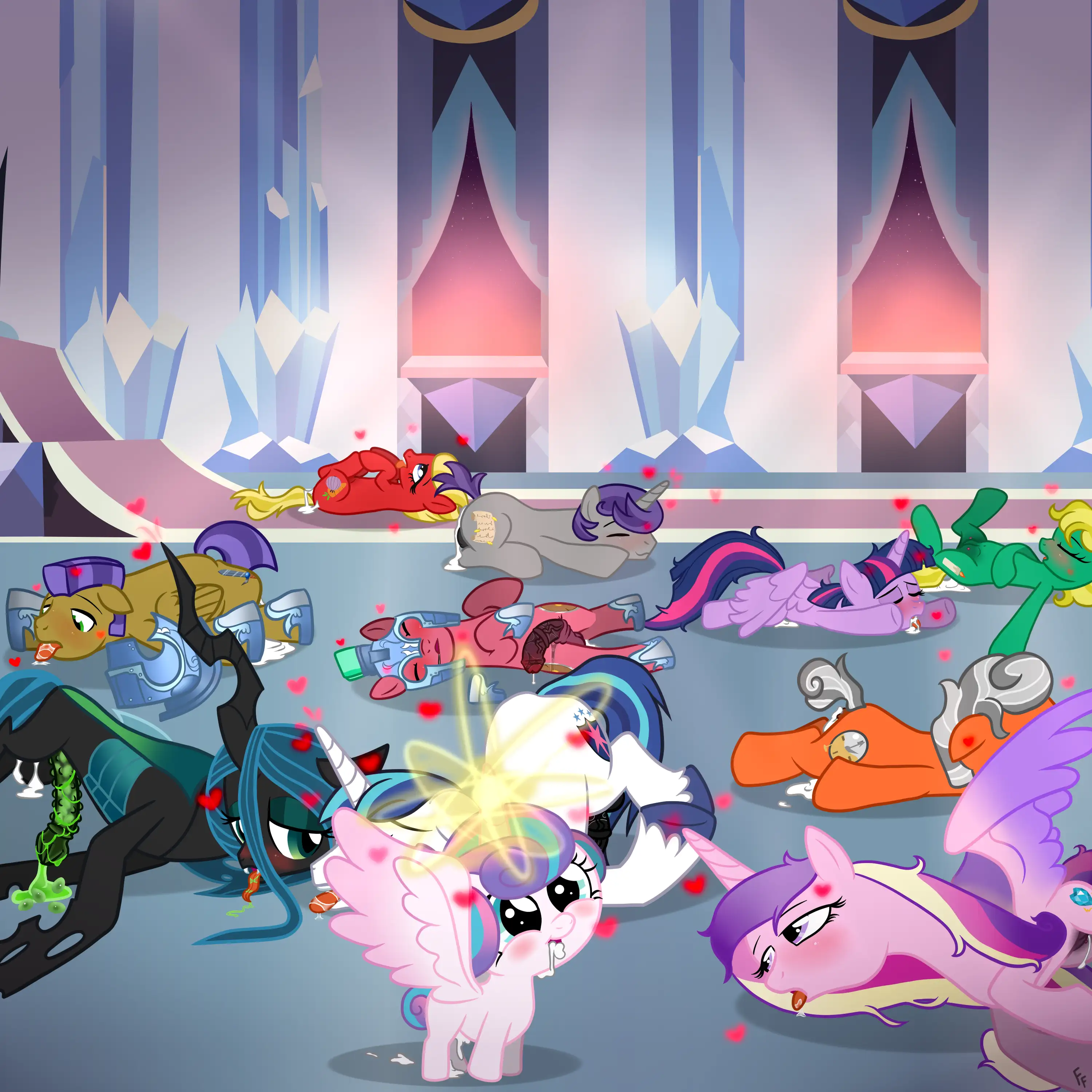 Как всегда, победа досталась непобедимой чемпионке, принцессе Селестии, которая приняла участие во множестве пикантных трюков, главным из которых стала самая масштабная в истории групповая оргия в полоску. Принцесса Ми Аморе Каденца занимает второе место с большим отрывом. Ее впечатляющее выступление с целой толпой оборотней принесло ей необходимые очки, чтобы оторваться от 3-го и 4-го мест соответственно (бонусные очки за измену мужу оказались решающими). Принцесса Твайлайт Спаркл, «тёмная лошадка» нынешнего чемпионата, применила все свои магические навыки в самых… шокирующих видах секса. Щупальца, похотливые призраки, проглатывание большого количества белого зелья — всё это позволило ей составить конкуренцию своей главной сопернице, принцессе Луне, но очки за 3-е место были заработаны в букаке-сессии с «Синими яйцами», известной командой по минету из Якьякистана. И наконец, самое главное, четвертое место досталось вечно не оправдывающей ожиданий принцессе Луне. Удачный старт с БДСМ-сессией с лесбийской командой из Грифонстоуна временно вывел ее на первое место, но захватывающее испытание с драконьими спортсменками оказалось слишком амбициозной целью для принцессы ночи, что, как и следовало ожидать, привело к ее четвертому месту.