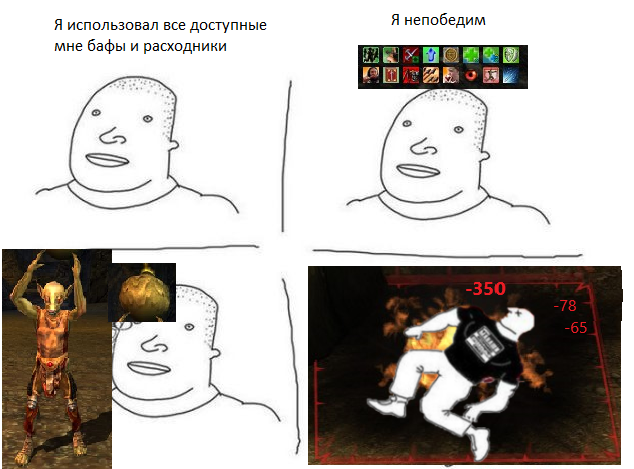 >>6634952 >Когда появятся гоблины из клана Шахидов маякните, пожалуйста - интересно на сколько будут проблемой в ваших приключениях Так я же даже картинку на эту тему делал в прошлом треде, еще когда их в пустошах встретил. Если ты не смог заставить его дропнуть банку, то он тебя ваншотит. >наверно хант с его ловушками будет очень хорошим подспорьем для тех мест Последний реворк забрал у ханта ловушки, видимо перенеся их в желтую ветку онли. А еще забрали и все виды рендж-замедла, и играя в синей ветке приходится чисто газовать на своих двоих от всего. Из рендж-контроля осталась разве что пугающая стрела. вери-хард_хант