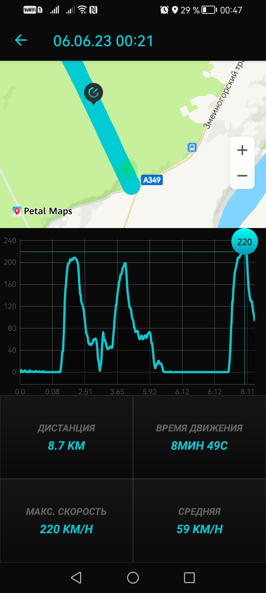 Вот он второй трай, тут на пятой как раз и дошел до почти 8к и 240км/ч по спидометру, повторюсь, реальных это всего-лишь 220, потенциально он должен разогнаться до реальных 235, по спидометру это и будет ~260, на этом тему с максималкой считаю закрытой, реальная так и осталась тайной, но я рот того ебал, в дешевом шлеме, в футболке и в шортиках ставить рекорды.