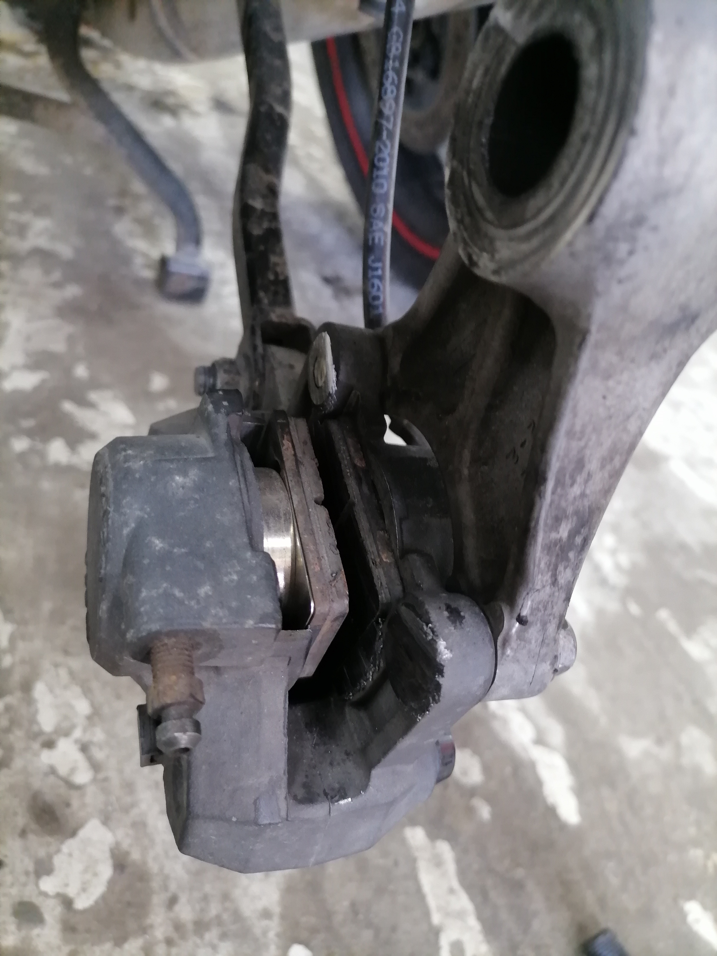 Сегодня забрал бандита, пока на кузьмичёвской втулке. Нужно менять колодки вкруг, колодку отковыряли, она слегка приварилась к суппорту и стерлась почти в ноль, поршни тоже расшевелили. Нужно заказать сальники на ось, ну и как втулка с разборки дойдет - поменять.