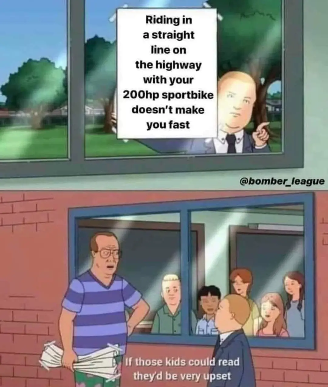 >>433359 >Дед запретил показывать Человек умеющий в мотоциклизме всё стесняется своей езды?? Да не может быть! Кекпекбвхек. >я о том, что на той же катане, с более высокими подножками и клипонами - это получается сделать органично Ромка, тебе надо просто наклонится к баку. Это неудобно и неорганично на любом моте, но именно так следует делать на разгонах. Я без ветровичка кладу челюсть на бак там как раз специальная выемка зделона. Охуеть как органично получается. >на прямом же бандите ну совсем дичь выходит А свешиваться на прямых это органично? >>433360 И всё равно я увидел слишком много. Ромка, объясни, нахуя люди свешиваются?