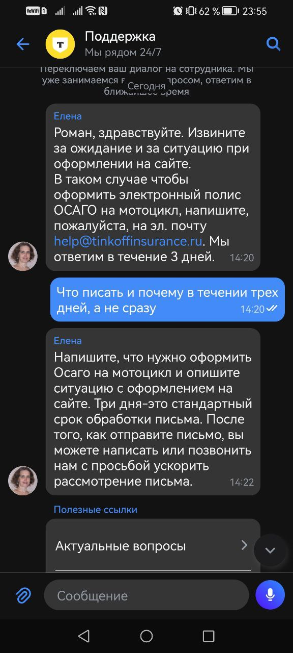 Подтверждаю, что тинькоф тоже пидор и убрал кнопку продления истекающего осаго на мотоцикл. Пришлось ругаться в чатике. Предложили сходить сюда, и ты попробуй тоже